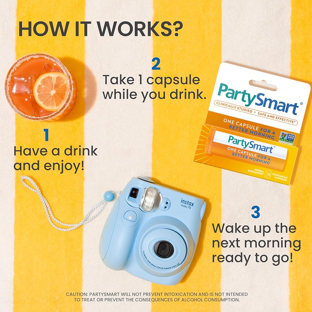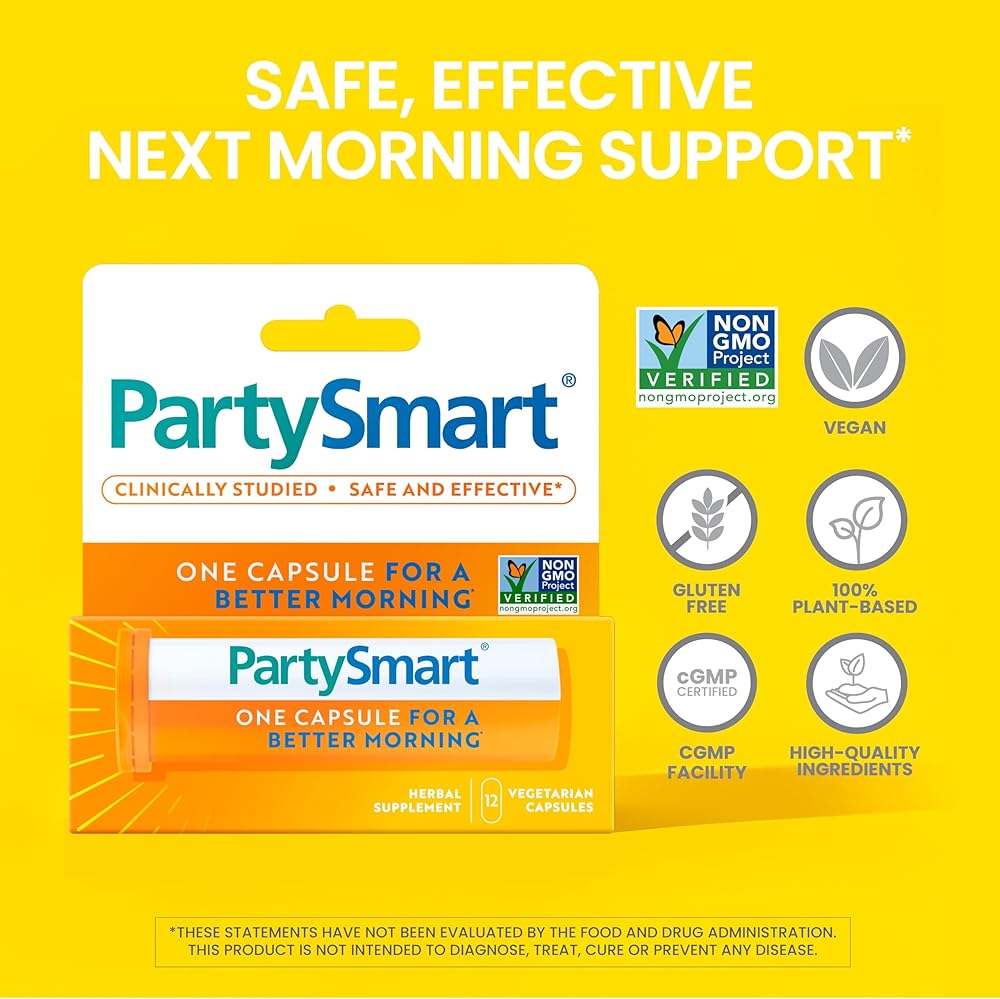 ONE CAPSULE FOR A BETTER MORNING: Wake up with a better mood, comfort and energy after a night of drinking. For people on the go, let 28-count Party Smart be your “plus one” for weddings, vacations, travel, and sporting events, all in a larger-size bottle perfect for sharing.