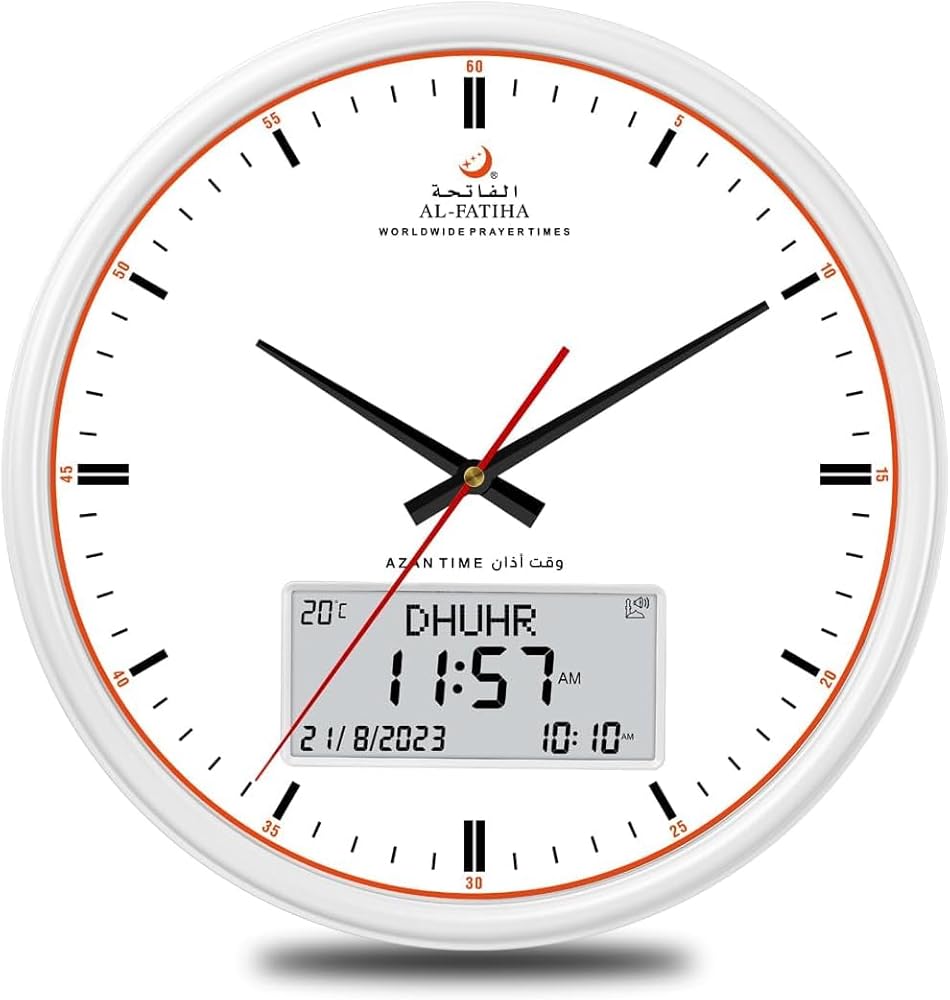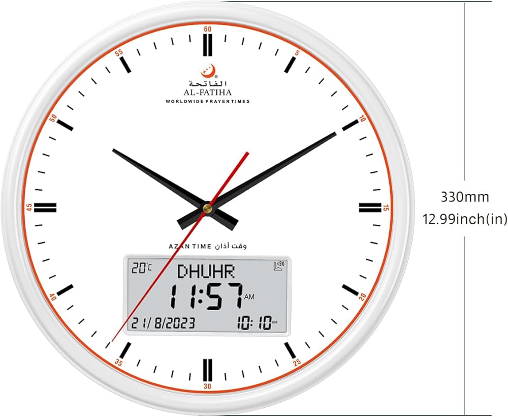 Prayer Reminder: 5 Azan Alarms, Azan clock with a high quality azan sound for all prayers with azan volume control fitted in all clock models.