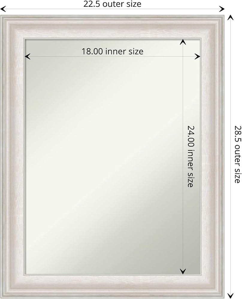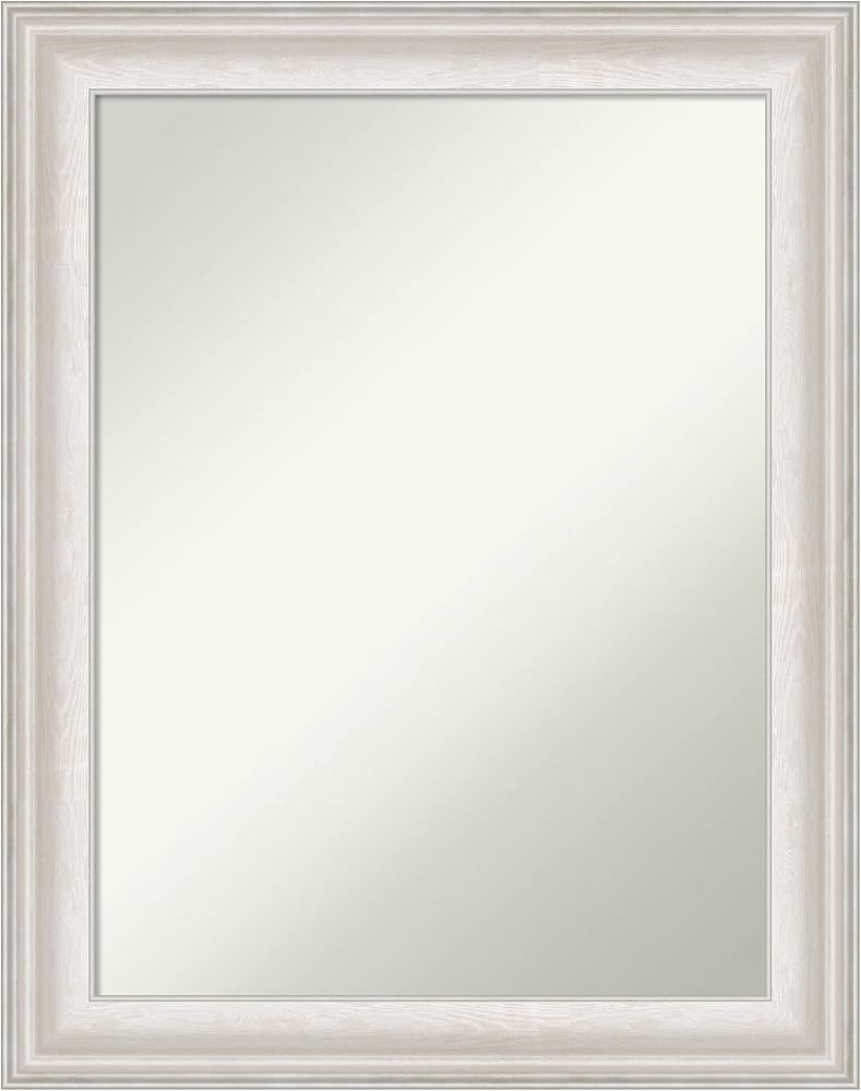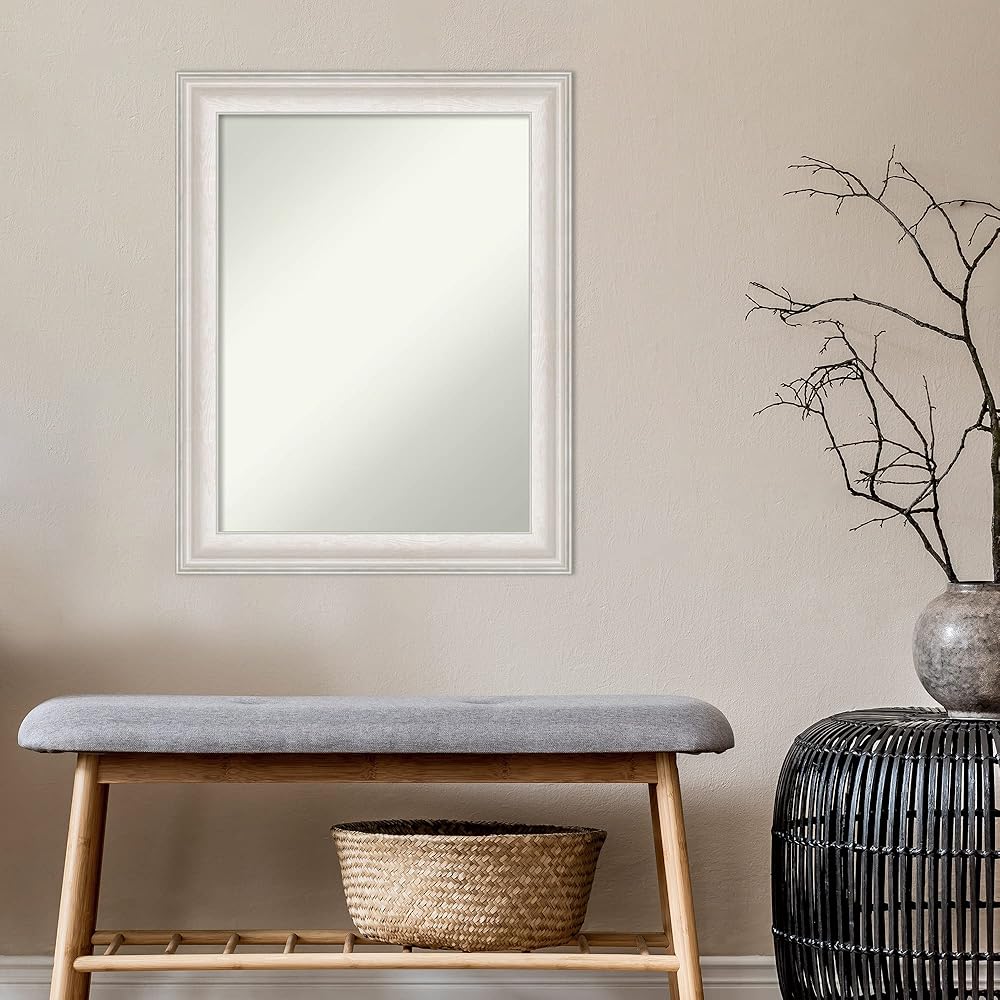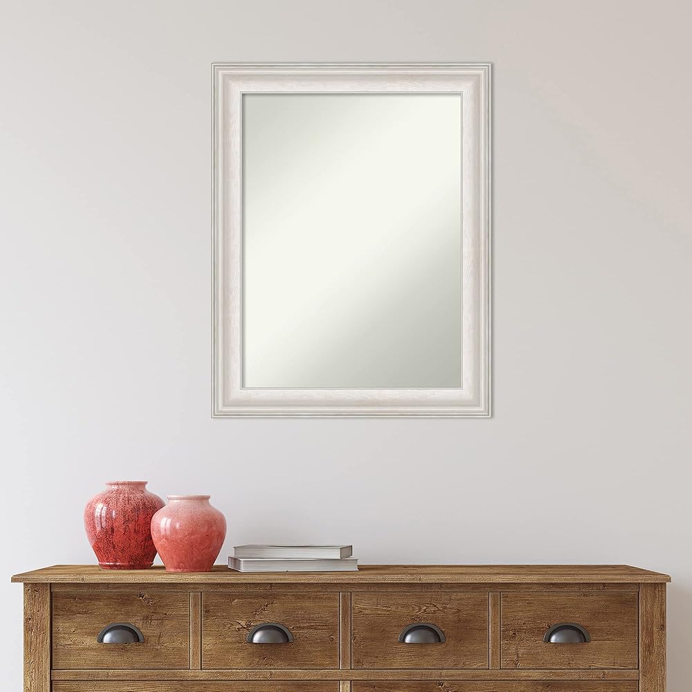 Amanti Art White Bathroom Mirror for Over Sink, 28x22 Trio White Wash Silver Rectangle Vanity Mirror, Medium Country Rustic Frame, Hangs Horizonally and Vertically, Bathroom Wall Decor, Non-Beveled