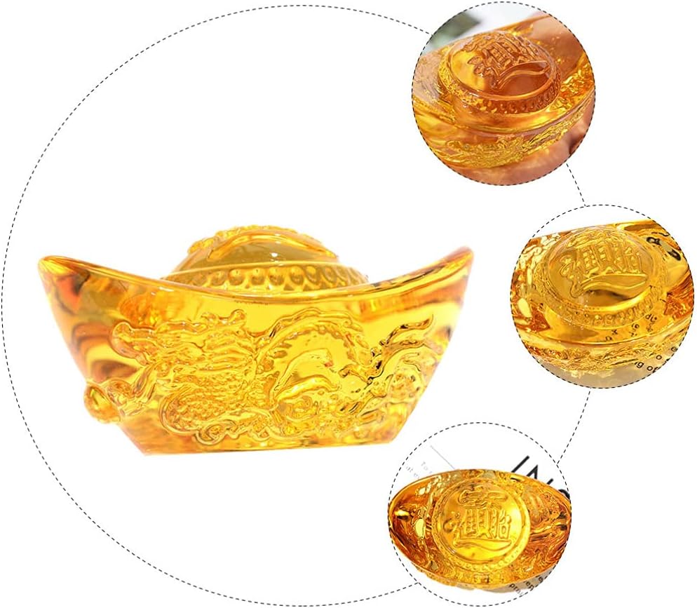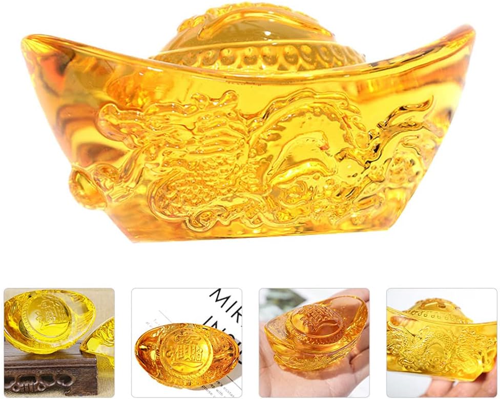 Angoily Yellow Crytal Feng Shui Golden Ingot Yuan Bao Articles Crystal Citrine Yuan Bao Statue Attract Wealth and Good Luck Home Office Decor Ornament