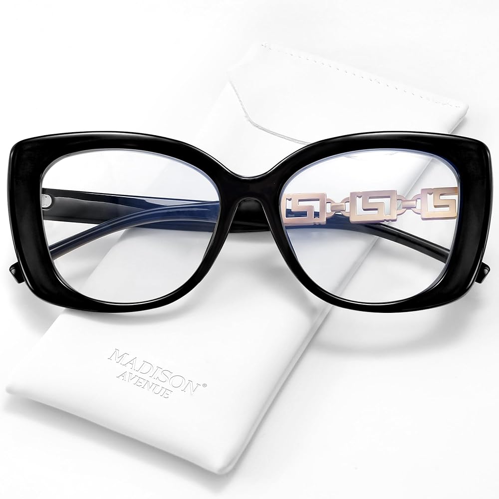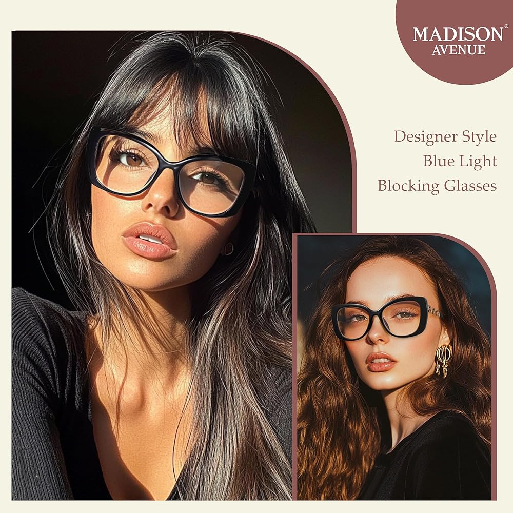 【Advanced Blue Light Blocking Lens】Madison Avenue oversized anti blue light glasses for women could filter harmful blue light and glare from digital screens such as computers, phones, and TVs. They maintain HD clear vision with less color distortion, promote better visual comfort, and help you achieve improved sleep.