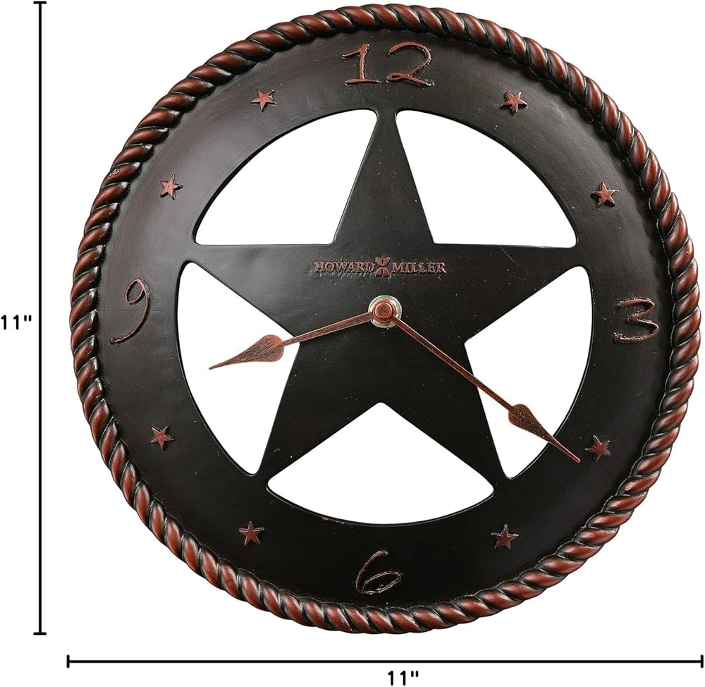 Howard Miller Glenns Ferry Wall Clock II 549-687 – Cast Resin Western Star, Molded Rope Edge, Oil Rubbed Bronze Finish, Start Hour Markers Plus Spade Hands, Quartz Movement