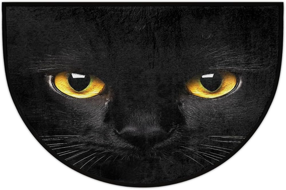 Half Round Rugs Watching Black Cat Semicircular Indoor Door Mat Entryway Welcome Mat Non-Slip Half Round Low Profile Door Mat for Patio High Traffic Areas