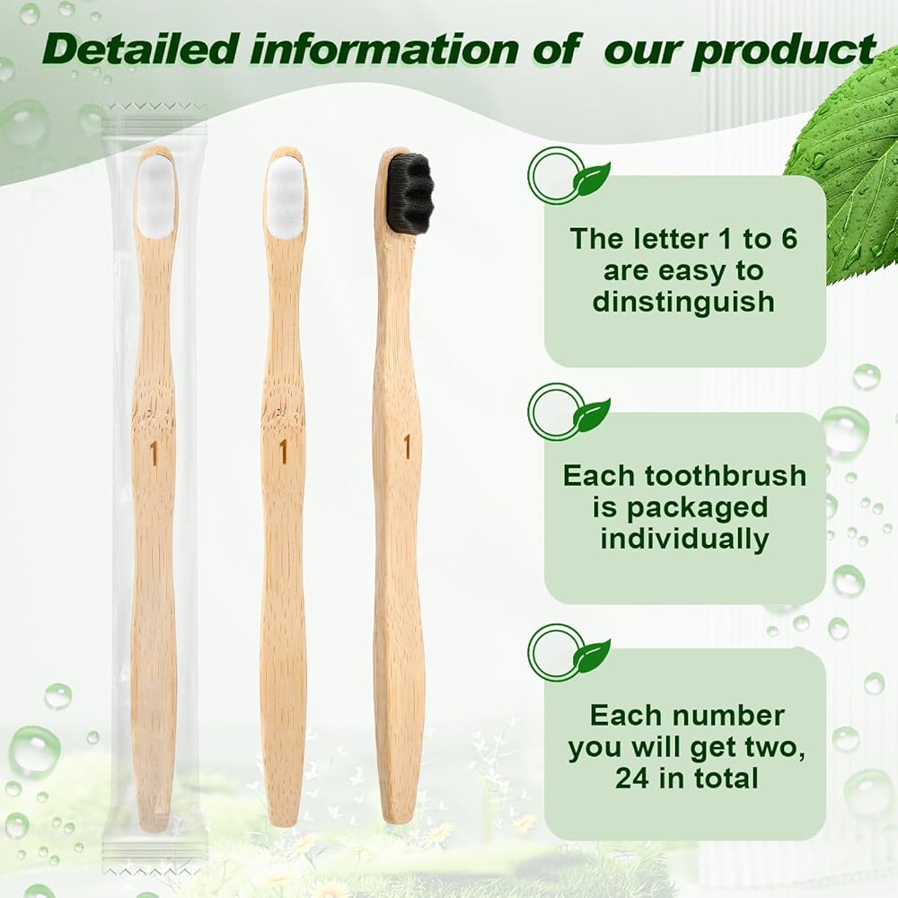 • Sufficient to Use: the packaging includes 24 pcs of wooden bamboo toothbrush; These toothbrushes come in 2 bristle colors (white and black), each marked from 1-6; The abundance and choice give you the ease to identify every toothbrush separately, hence ideal for a larger family use