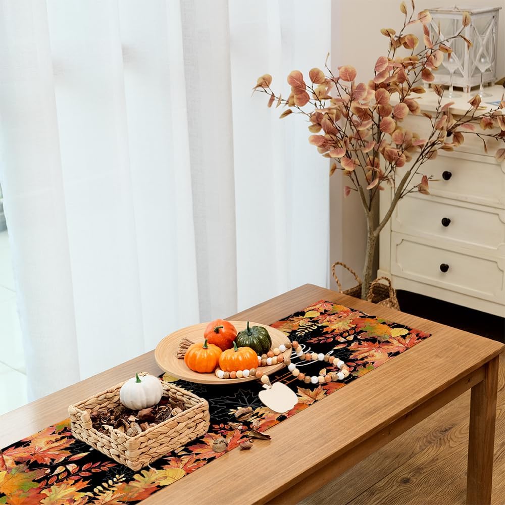 [Protection]: Not only do our fall table runner provides decoration for your home, but it also protects your dining table from food stains and scratches. Please NOTE that a heat-proof mat should be placed on top of the table runner to protect your table from heat damage