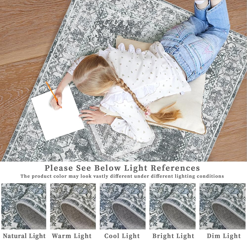 [Non-slip & Non-shedding Rug] Experience peace of mind with our non-slip rug, featuring a skid-resistant TPR backing that firmly grips the floor without the need for additional rug pads. The expertly machine-woven construction and reinforced overlock edges ensure minimal shedding. This rug is strong and durable, making it safe for kids to play and resistant to pet paw scratches.