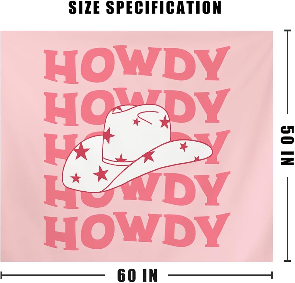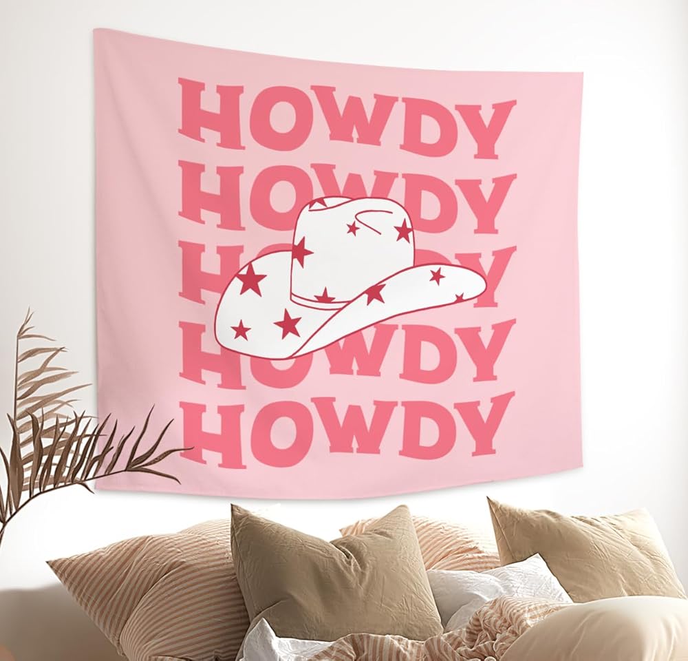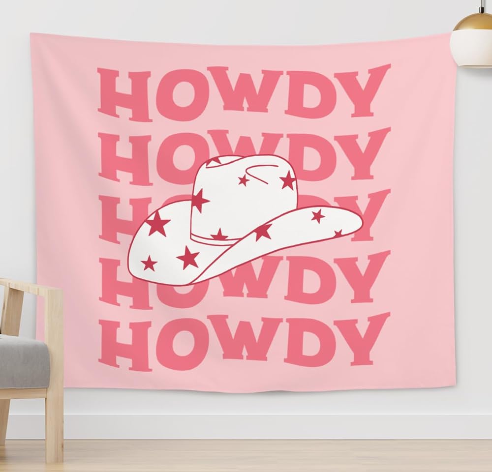 ISANOU Pink Western Room Decor,Preppy Howdy Cowgirl Hat Tapestry Wall Hanging for Women Teen Girls Bedroom,College Dorm Home Living Room Wall Decoration,50x60 Inches
