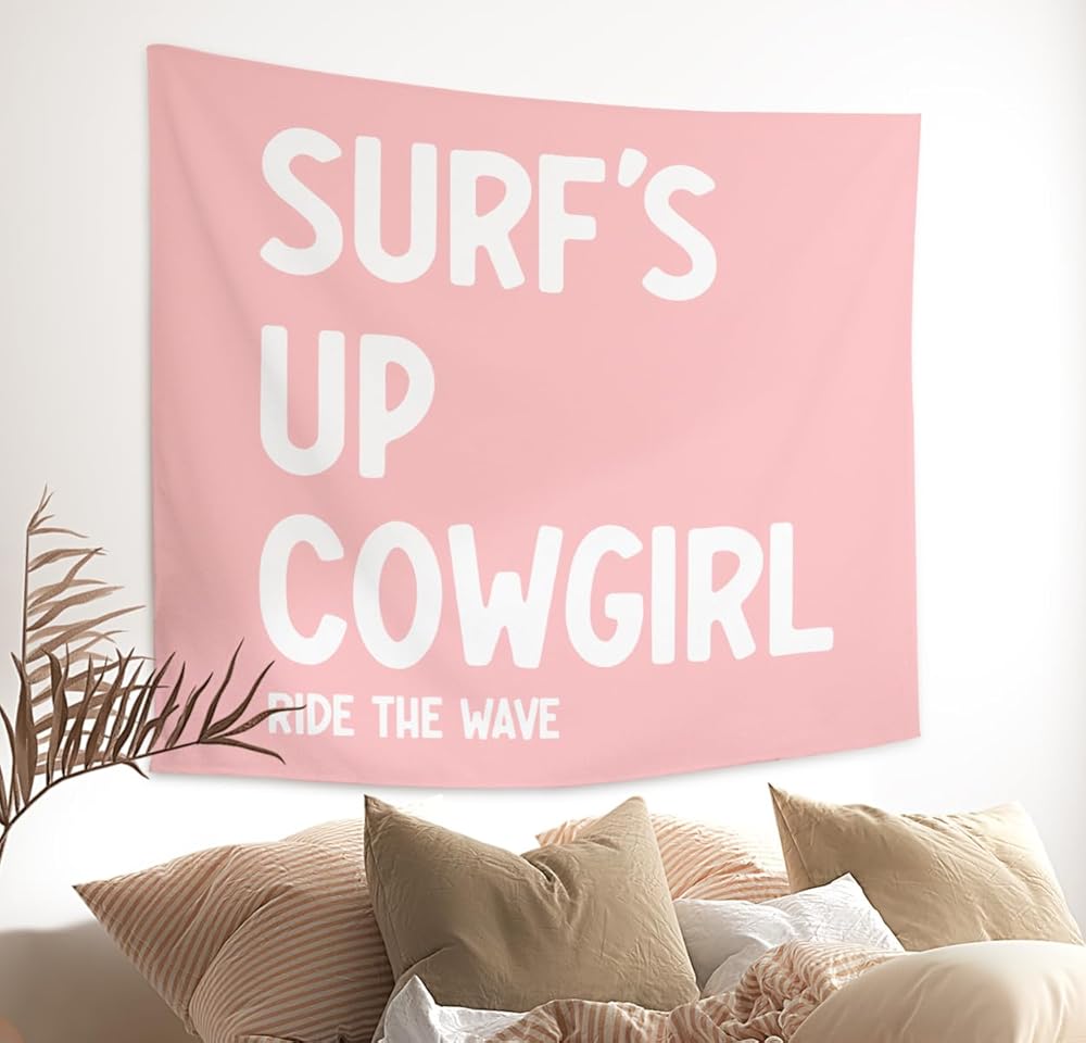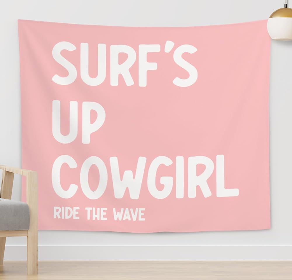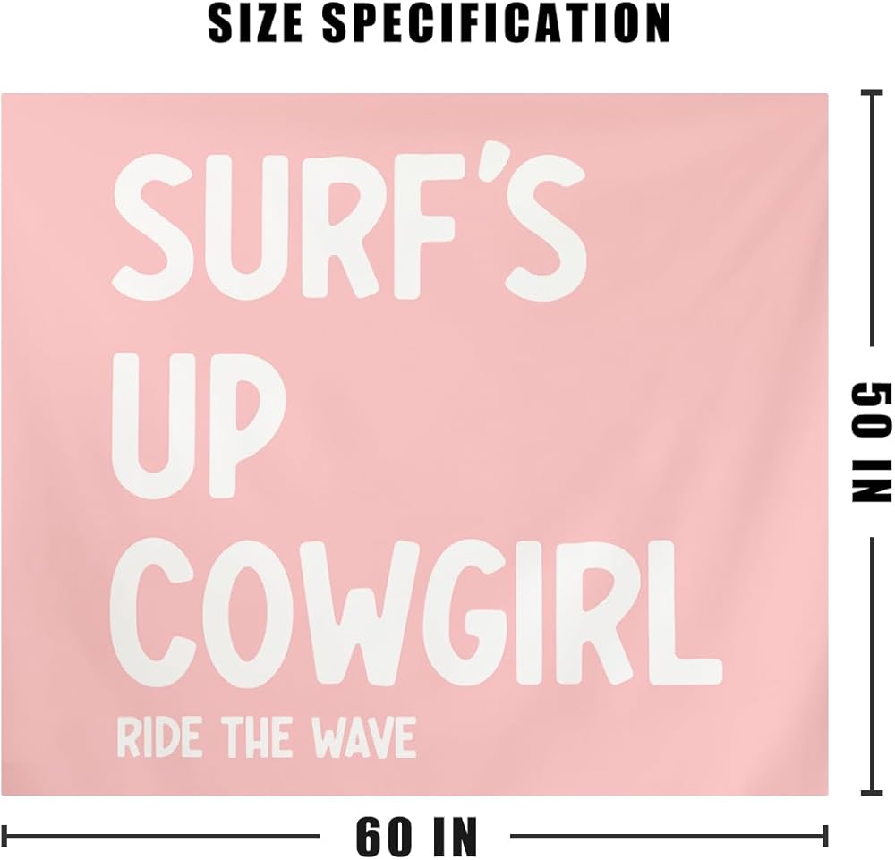 ISANOU Coastal Girls Room Decor,Pink Surf's Up Cowgirl Tapestry Wall Hanging,College Dorm Home Living Room Wall Decoration,Gifts for Women Teen Girls,50x60 Inches
