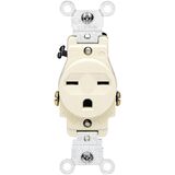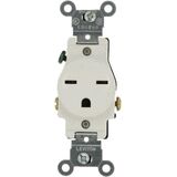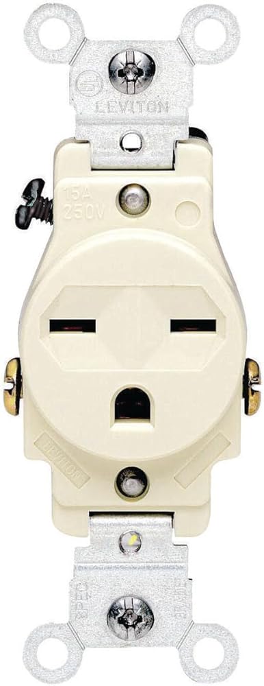 Leviton's line of Heavy-Duty Specification Grade receptacles are designed and manufactured to withstand the most demanding environments. Available in a wide variety of configurations, including isolated ground, tamper-resistant, etc., these Commercial Grade devices are the electrical contractor's choice for use in hotels, schools, hospitals and commercial office buildings. 15-Amp, 250-Volt, Narrow Body Single Receptacle, Straight Blade, Commercial Grade, Grounding, White.