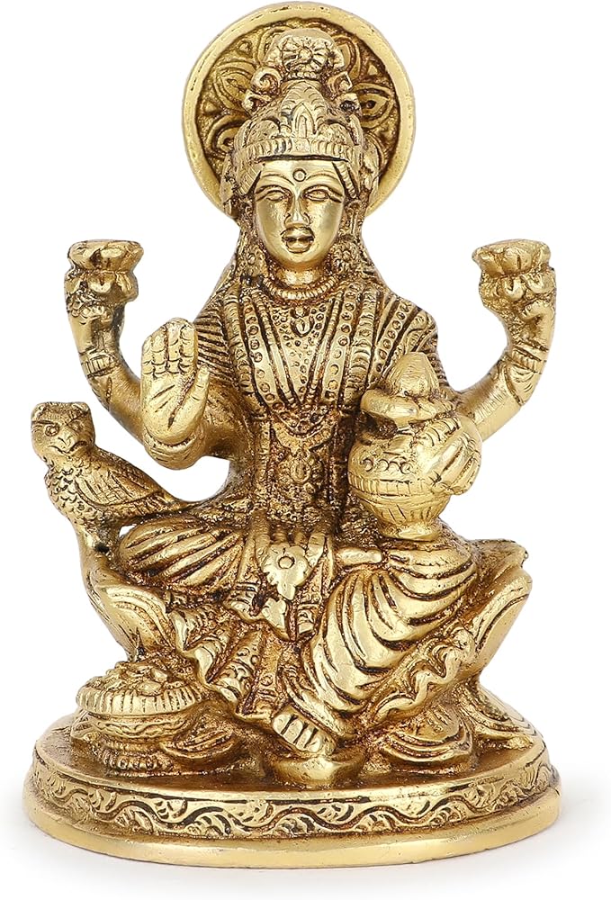 Lakshmi embodies wealth, prosperity, fortune and the embodiment of happiness. She is the divine maid of Lord Vishnu. Her four hands represent the four goals, namely Dharma, Karma, Artha and Moksha. As the goddess of happiness and beauty, she represents abundance, prosperity, wealth, well-being and harmony. She is revered by millions of Hindus or followers of the Vedic customs and is also considered the universal goddess of opulence. Lakshmi idols can be placed in your home for daily worship