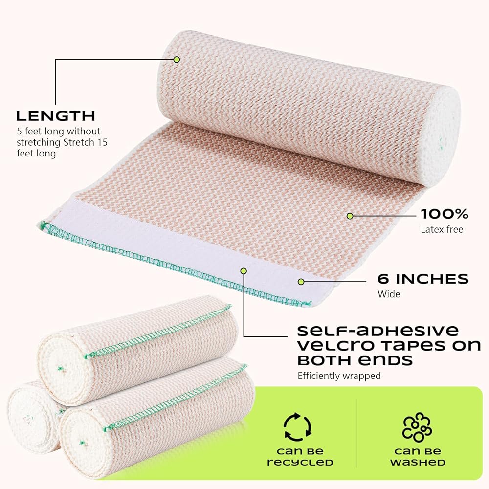 【Easy to use and rewind】The elastic bandage large size has strong clasp at both ends for ease of use and winding. This elastic bandage with velcro provides hours of protection and support. Elastic bandages are up to 6 inches wide and up to 15 feet long when fully stretched, making them suitable for any part of your protective package.