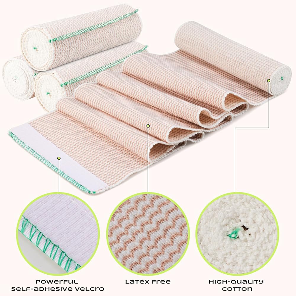 【Efficient reuse】The elastic bandage large size is soft and breathable, made of cotton, high elastic polyester and spandex. You can adjust the fit and binding strength of the elastic bandage wrap to suit your needs, the elastic bandage wrap provides long-lasting, tight support even after repeated use.