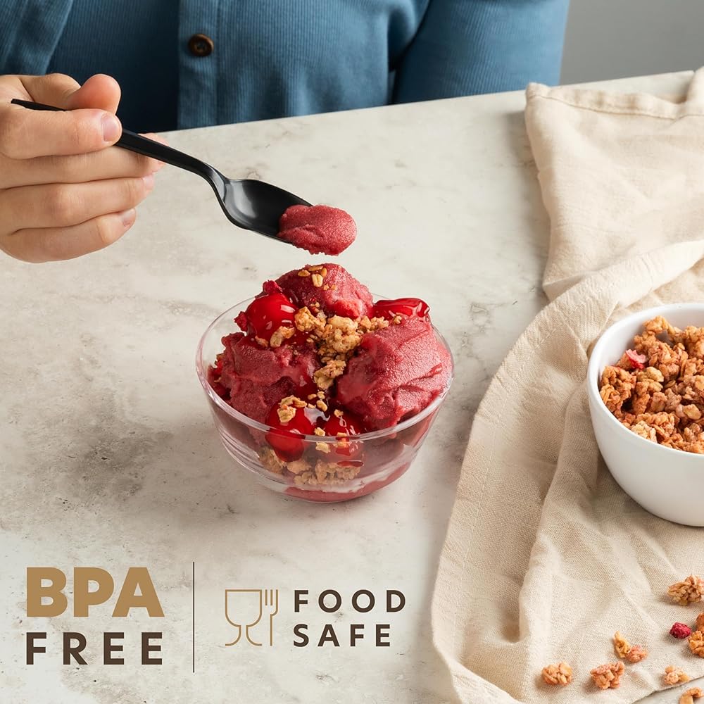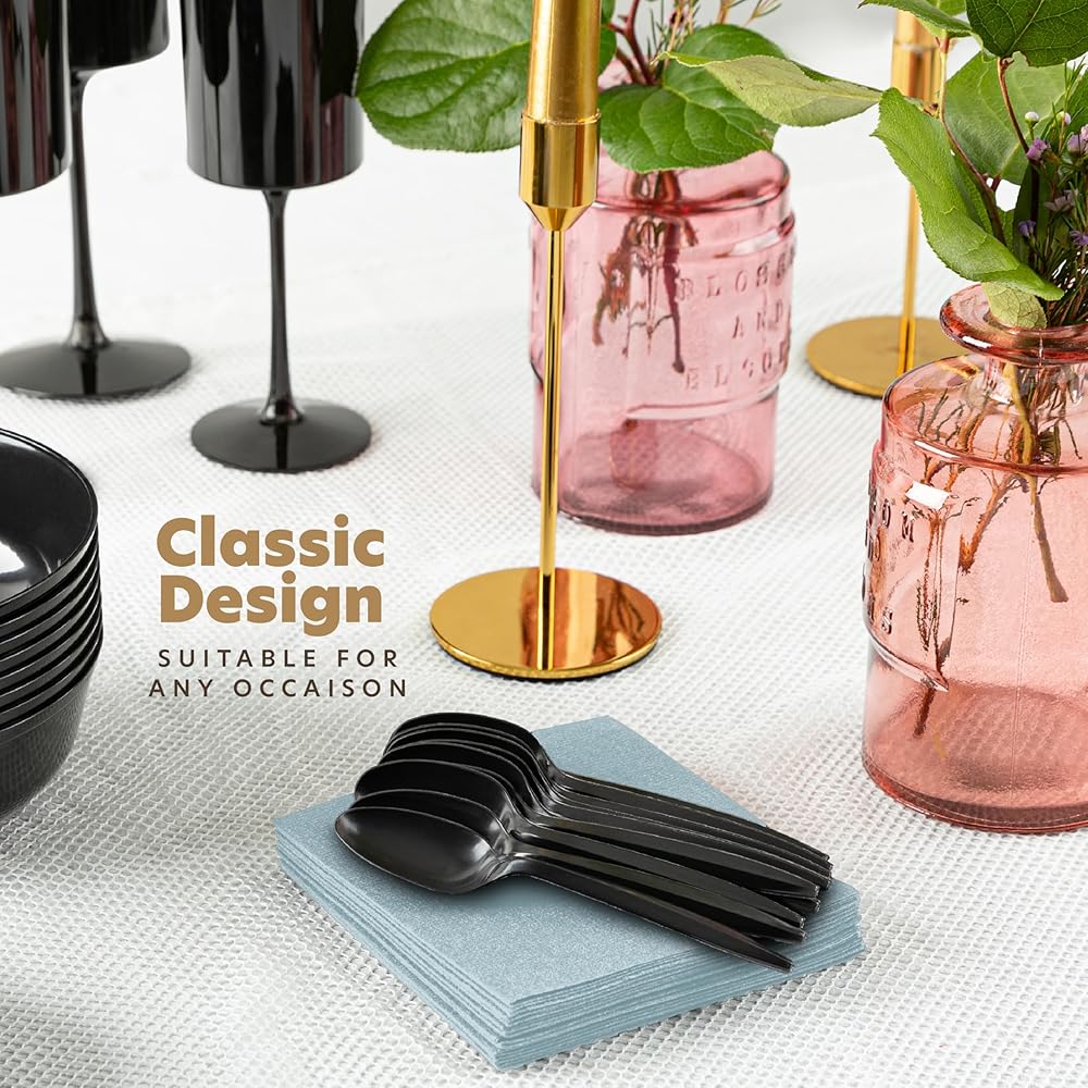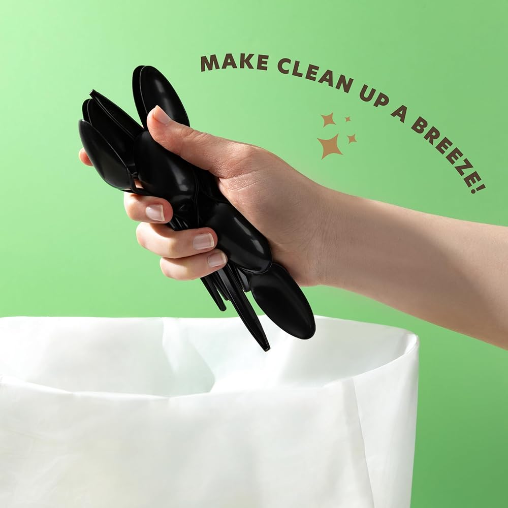 Versatile black cutlery has a sharp modern look. For everyday use or parties, these plastic cutlery are sure to fit your aesthetic and match your tableware.