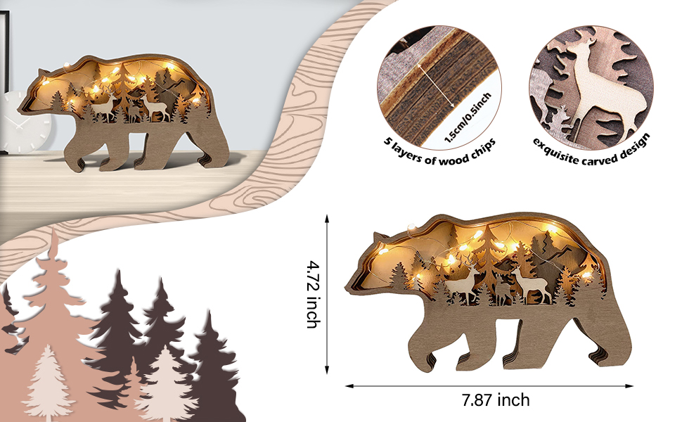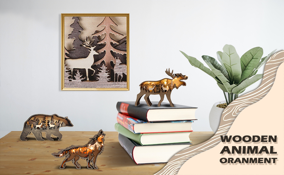 Artwork material: Multi-layered natural wood, 3D vivid and natural animals and forest