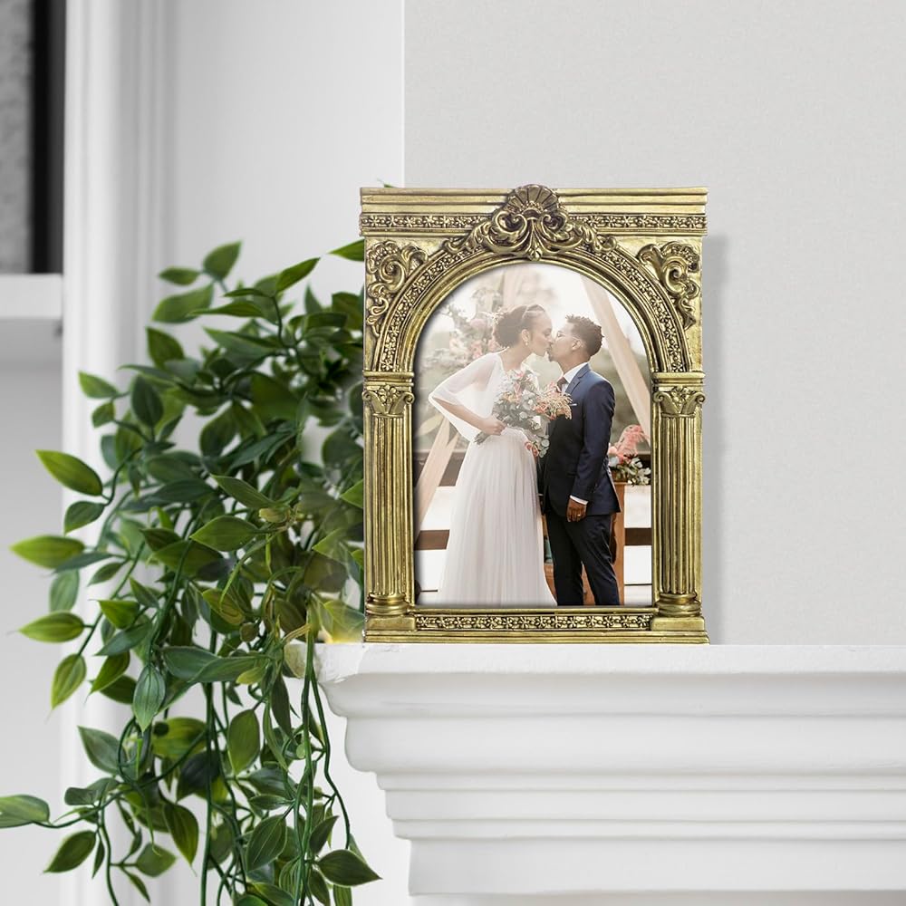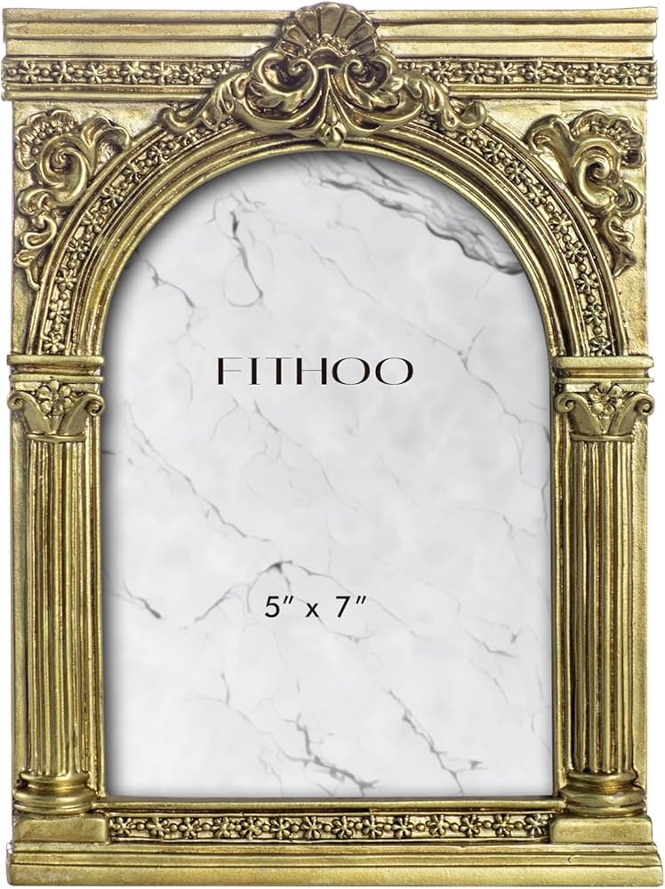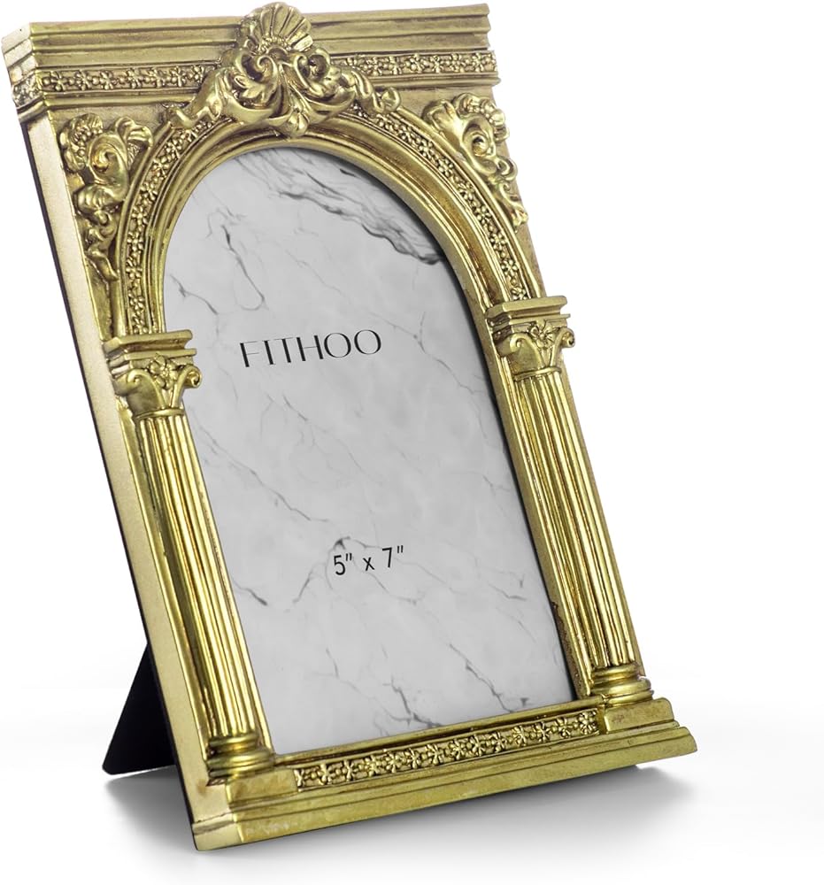 FIHOO 5x7 Vintage Arched Picture Frames, Gold Antique Photo Frame with Glass Front for Table Top or Wall, Home Decor, Ornate Photo Gallary Art