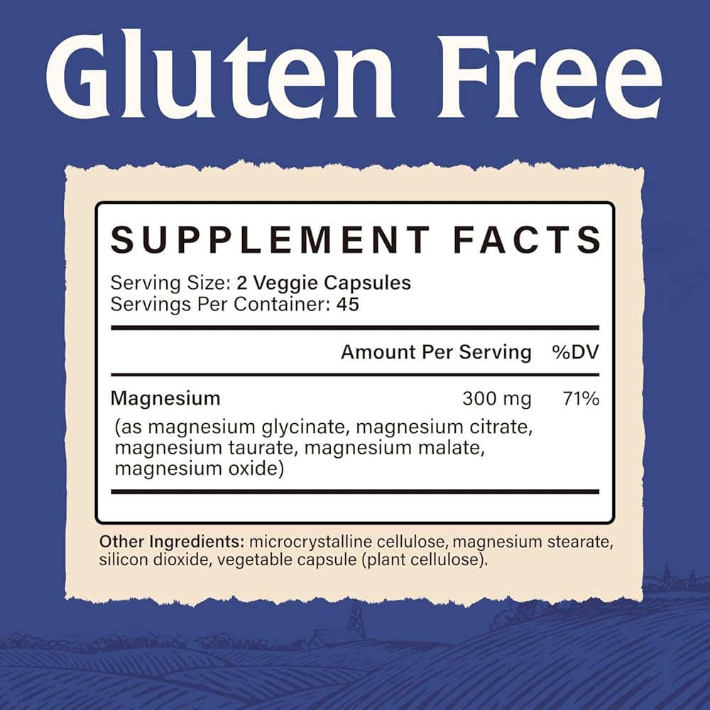 مركب المغنيسيوم، 300 مجم من عنصر المغنيسيوم، 5 أشكال مع جليسينات المغنيسيوم والسيترات، امتصاص فائق، لصحة العضلات والأعصاب والقلب والأوعية الدموية، غير معدل وراثيًا، 90 كبسولة نباتية