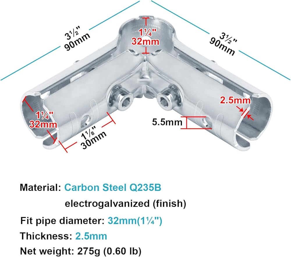 eoere 8 Sets 90 Degree Structural Pipe Connector 3 Way Metal Joint Chain Link Fence Clamp Fit 1-1/4 Inches O.D. Pipe, Carbon Steel Corner Fitting End Rails Clamps, Thickness 2.5 mm