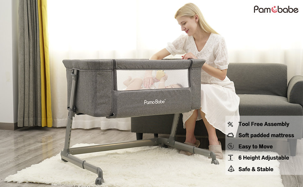 【Safe and Durable】- Pamo Babe baby bedside crib is constructed of thick aviation aluminum alloy frame and steel-alloy for durability, keeping your baby safe and promoting bedside parent-infant bonding with your little one.