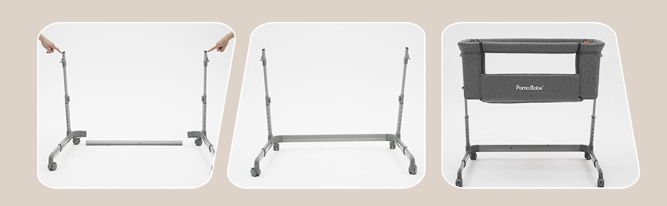 【Bedside Sleeper Mode】- 1. Adjust the crib to a right height, 2. Secure the crib to the adult bed with securing straps, 3. Press the brakes to lock the wheels. Soft mattress to offer your baby a sound sleep and sweet dream.