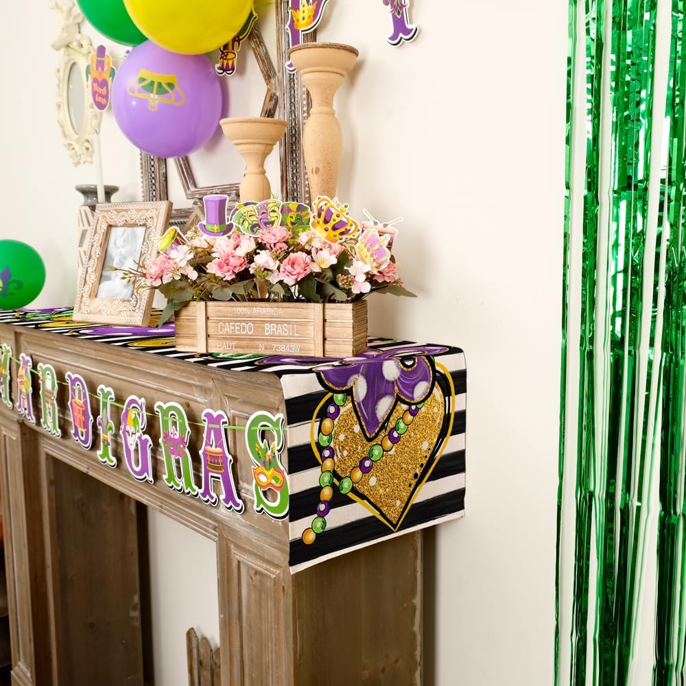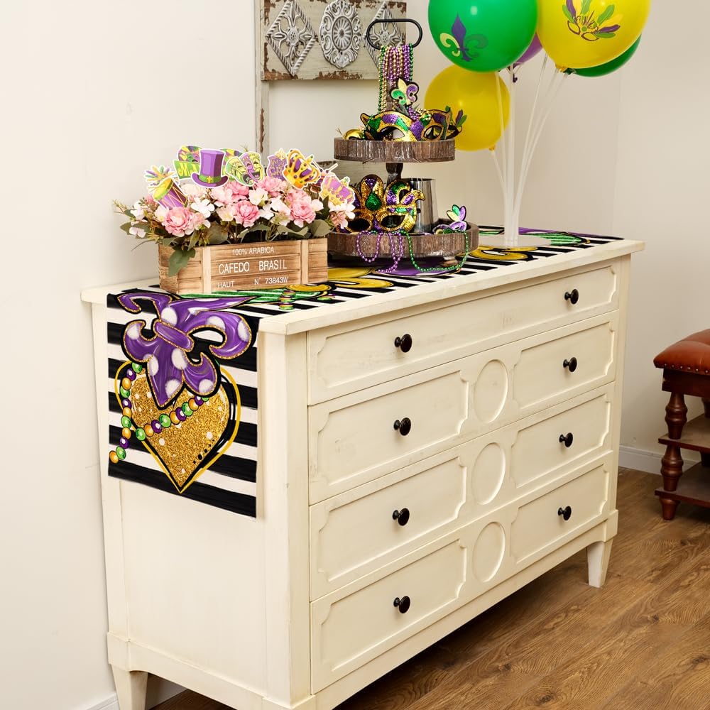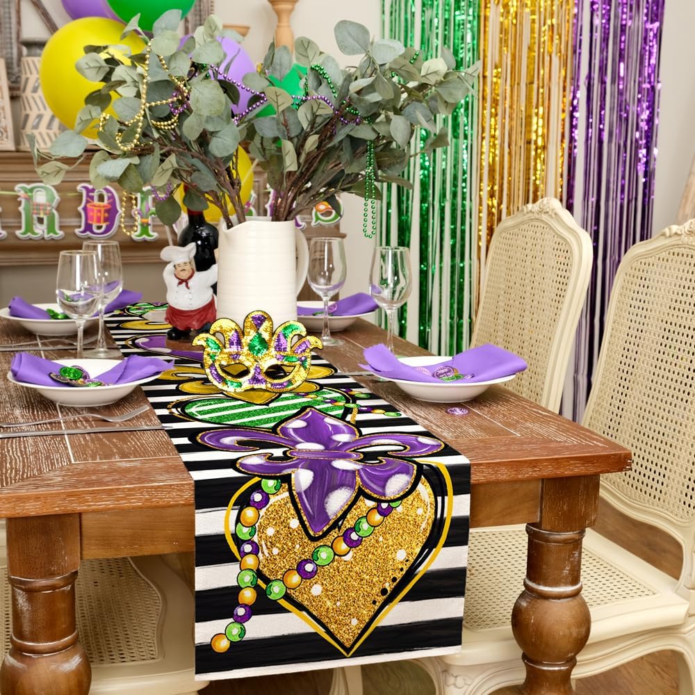 Generous Size for Versatile Decor: This table runner ,measured 13 x 72 inches, allowing you to effortlessly adorn your dining table or create a stunning centerpiece for your Mardi gras