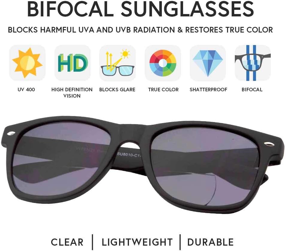 Nearly Invisible Bifocal Lenses - Regular Sun Glasses on Top with Almost Invisible 1.75 Power at the Bottom Perfect for Outdoor Reading and Distance Viewing.
