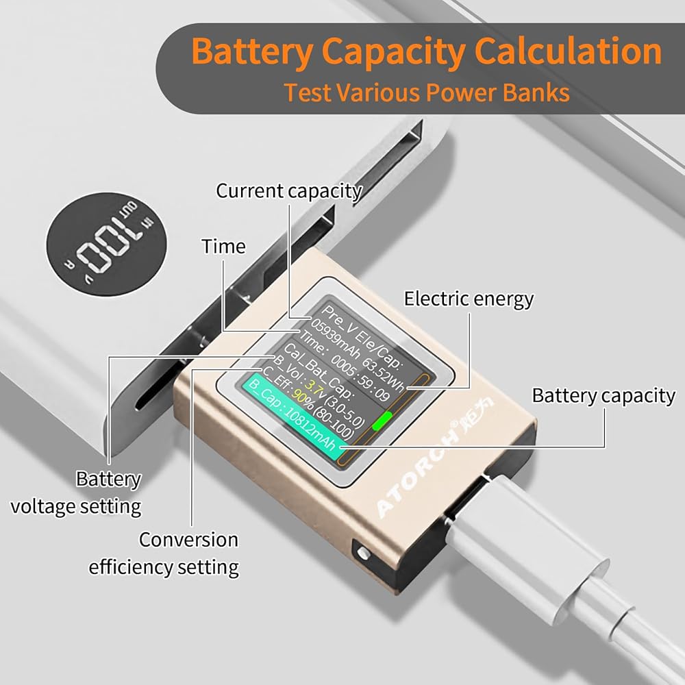 【High Precision USB C Power Meter Tester】This USB C tester voltage current tester can measure voltage, current, power, capacity, energy, timing, temperature, and record the maximum voltage, current and power values. It has the same accuracy as large professional instruments.