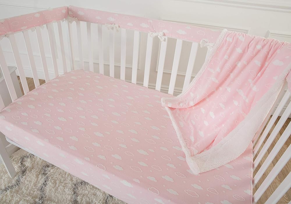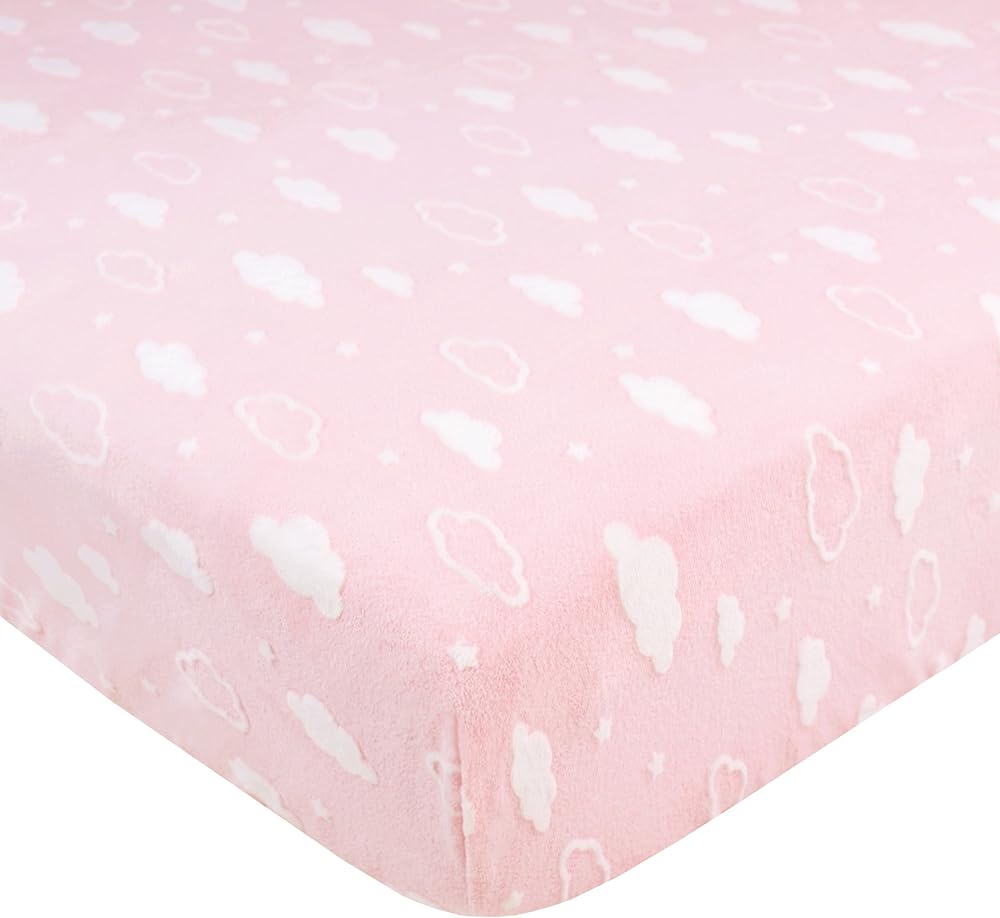 TL Care Heavenly Soft Chenille Fitted Crib Sheet 28" x 52", Warm and Cozy Neutral Chenille Sheet, Pink 3D Cloud, for Boys and Girls, Fits Crib and Toddler Bed mattresses