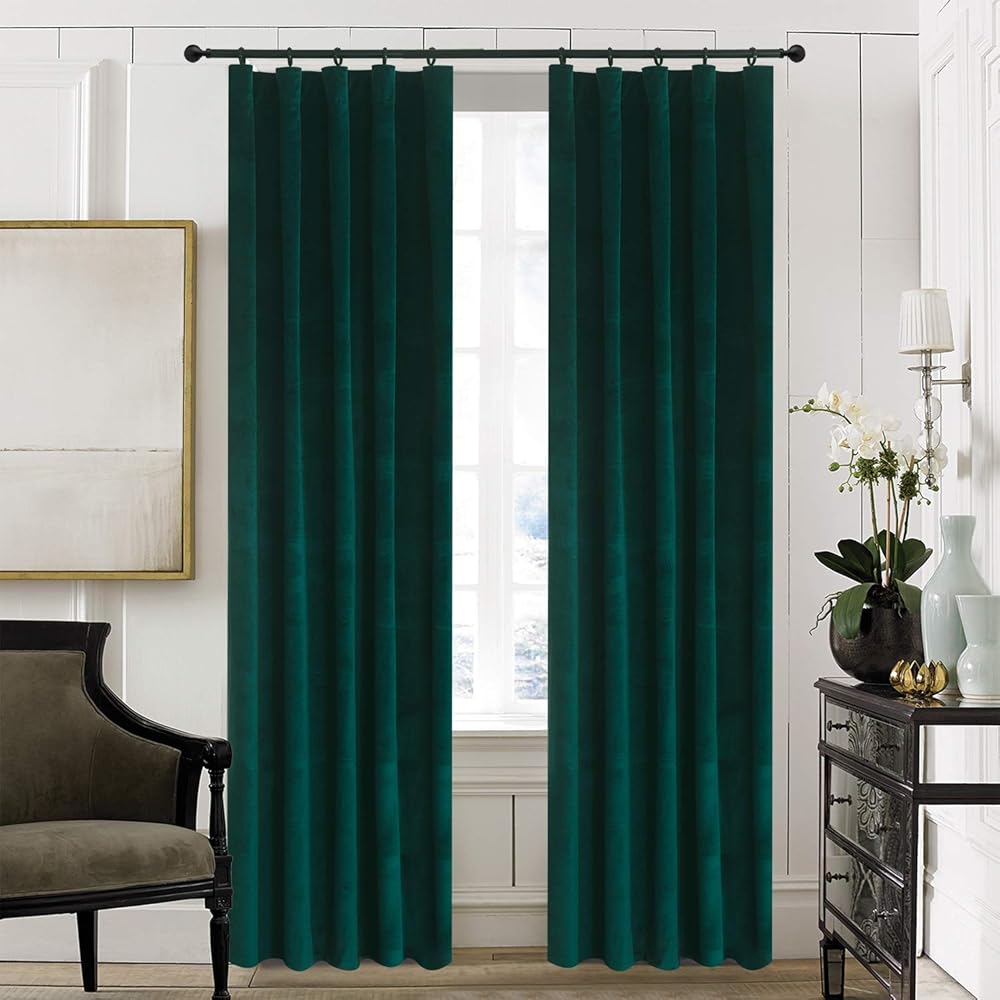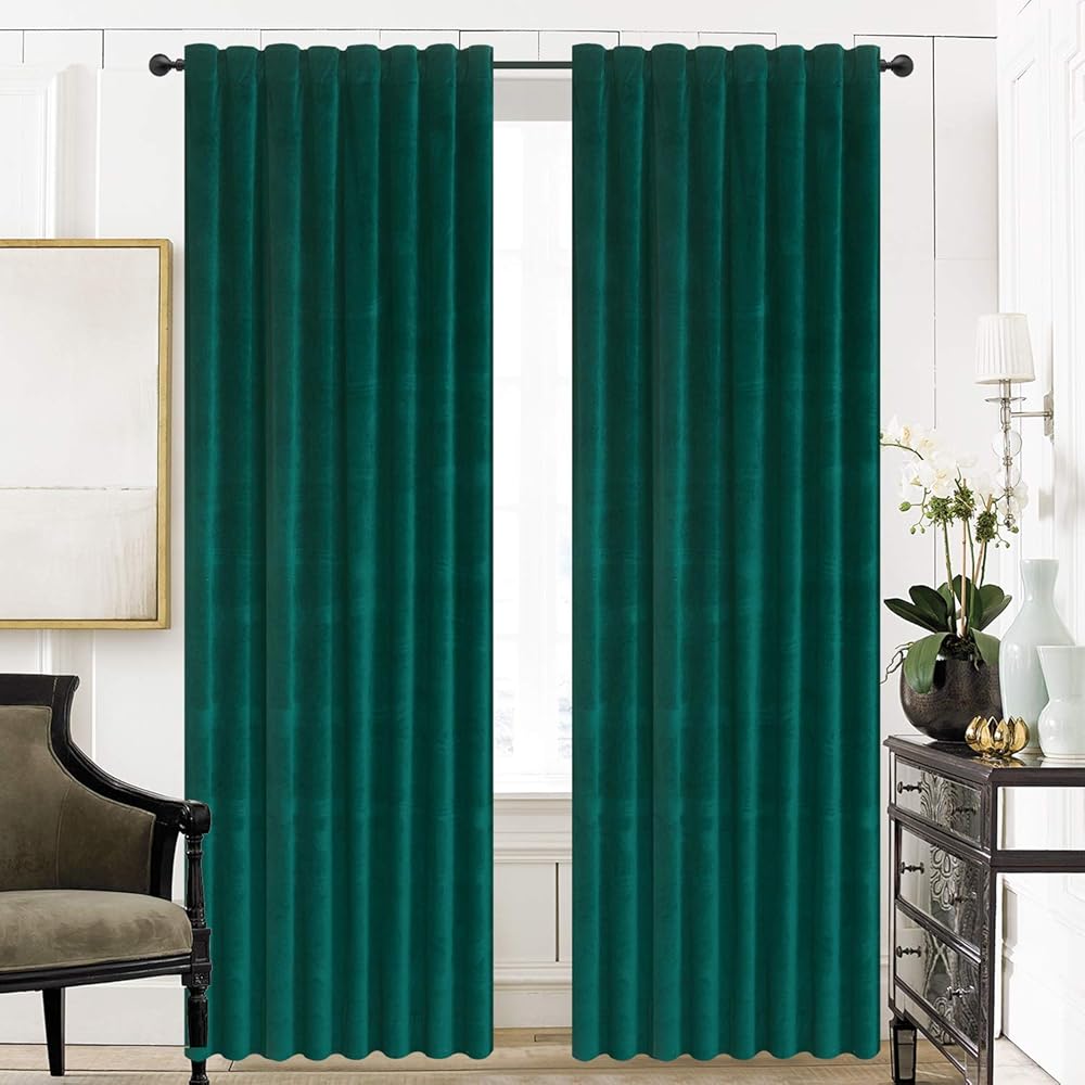 Roslynwood Teal Green Velvet Curtains Room Darkening Curtains for Living Room,Thermal Insulated with Rod Pocket & Clip Rings Window Curtain for Bedroom (2 Panels,52" W x 84" L)