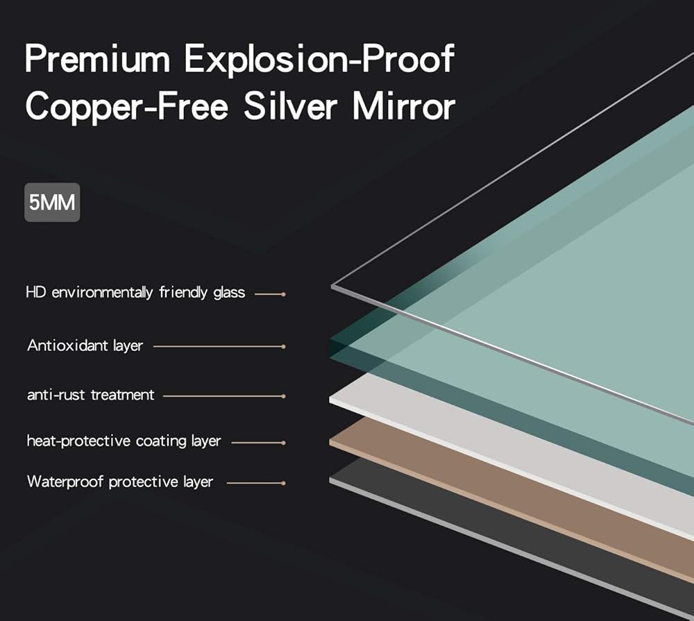 - مرآة خالية من النحاس عالية الوضوح، واضحة وغير مشوهة