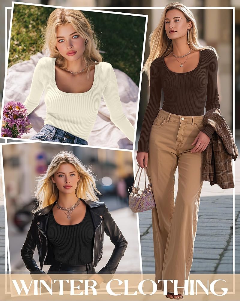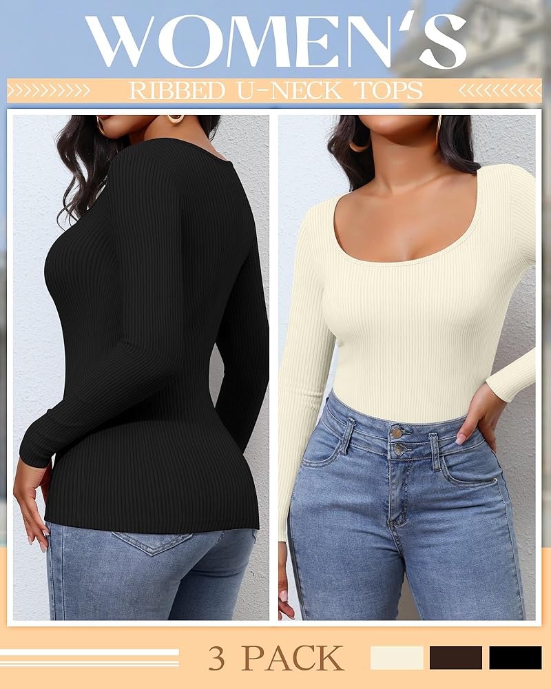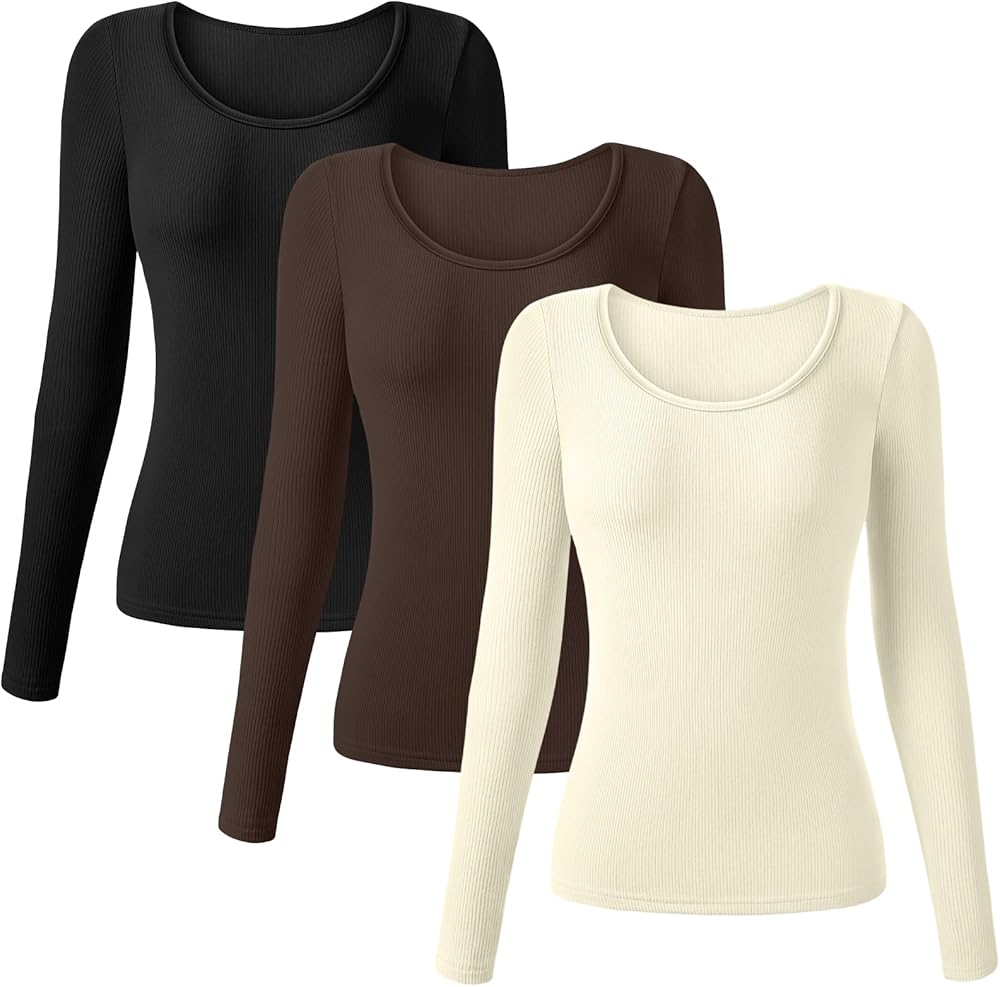 Package Includes: you'll get three women's scoop neck tops packed in different colors, so there's no need to be obsessed with which color to choose, can be changed at any time to wear; Slim design to set off the curves of the body, but also warmer
