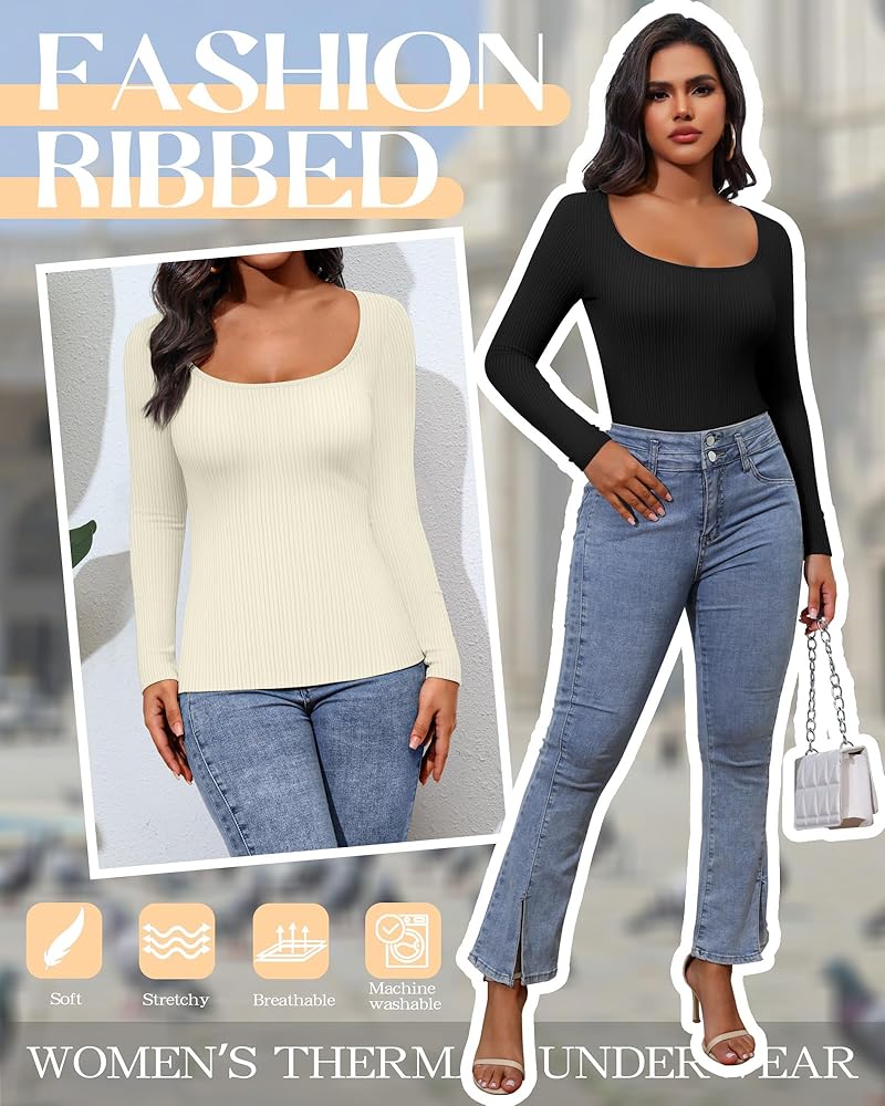 Scoop Neck Design: the long sleeve thermal shirts for women have a low scoop neckline, but not too low; Great to wear alone or while layering, which doesn't show even if you wear a shirt, single wear or in combination, keeping you stylish and elegant