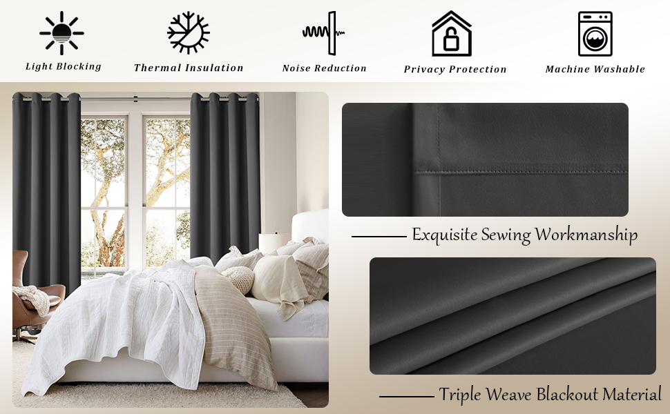NOISE REDUCING AND PRIVACY PROTECTING DRAPES: Light blocking curtains are thick and heavy. Which can help reduce outside noise for bedroom and living room, and also can be used as a partition to block the view of the room and create a private space for you. Quiet and dark environment make you will have a good sleep, full of energy and happiness every day.