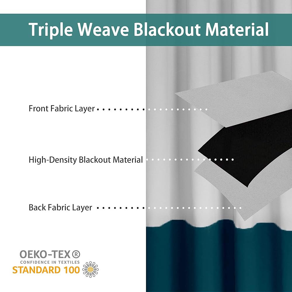 PREMIUM BLACKOUT MATERIAL: Our room darkening curtain is made of 100% polyester fabric and have the same color of the front and back. Crafted in a certified STANDARD 100 by OEKO‑TEX factory from a durable soft and thick triple weave blackout fabric which block out 90% above sunlight and UV rays. Darker colors work better.