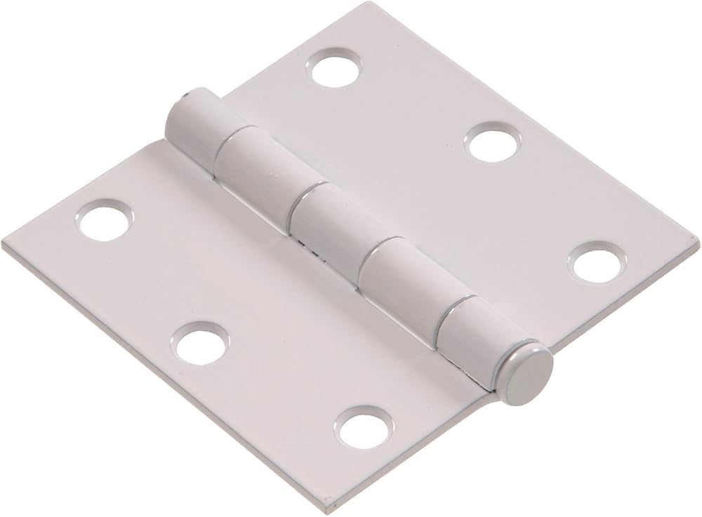 Hardware Essentials square corner white door hinges are a sturdy, reliable way to mount your doors with ease. Though they remain mostly unseen, a quality set of hinges can be the difference between a noisy, sagging, daily frustration and a silent, pristine entryway. Hinges are full mortise with beveled holes for a flush mount.