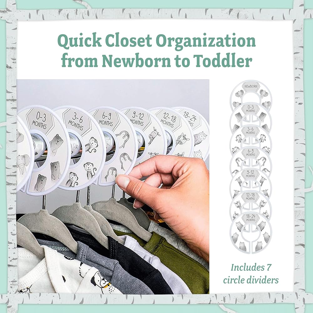 • Sort Clothes By Stages & Size: These dividers fit up to 7 categories, from newborn to toddler sizes. Group from 0-3 months to 18-24 months.