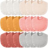 a Total of: there are 18 muslin baby bibs in the package, ample quantity for daily use and replacement; 16 Bright colors make them easy to catch the attention of baby boys and girls, and can be well matched with different outfits