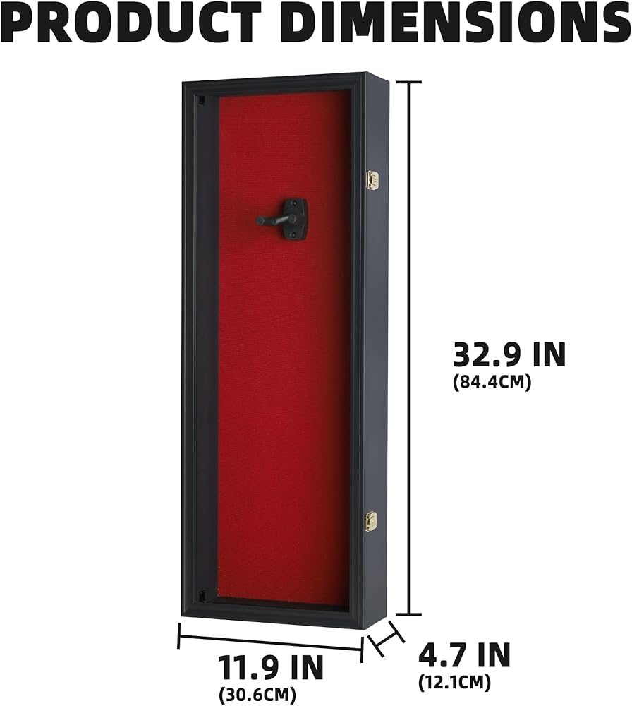 Black Finish. Solid wood. Dimensions: 33.25"H X 12"W X 4 .75"D Inside Dimension: 32.25"H X 11"W X 4.1"D Space from top to hanger: 5.5" Space from inside hanger to the bottom: 25.75"