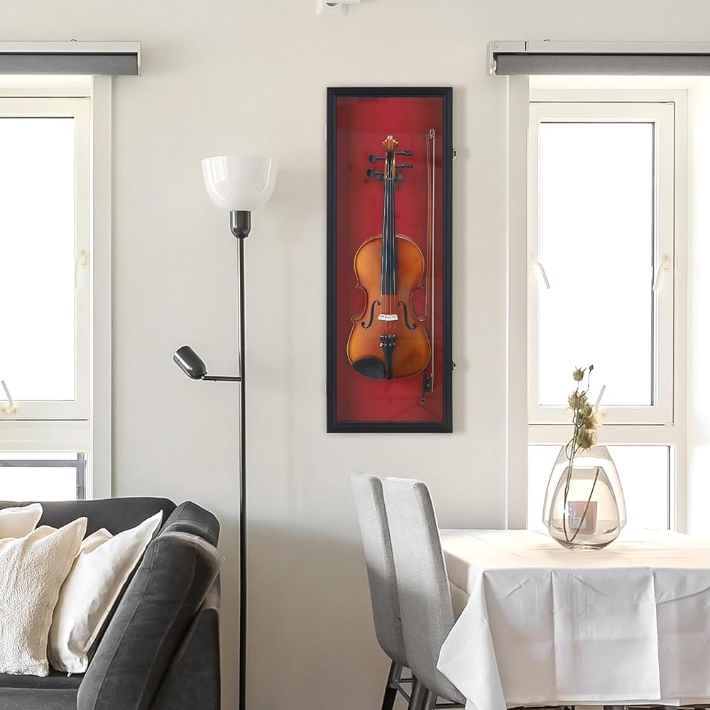 Rose Red Felt Background. Fits a Ukulele Fiddle or Violin with Bow no more than 33" long. This will not fit a guitar.