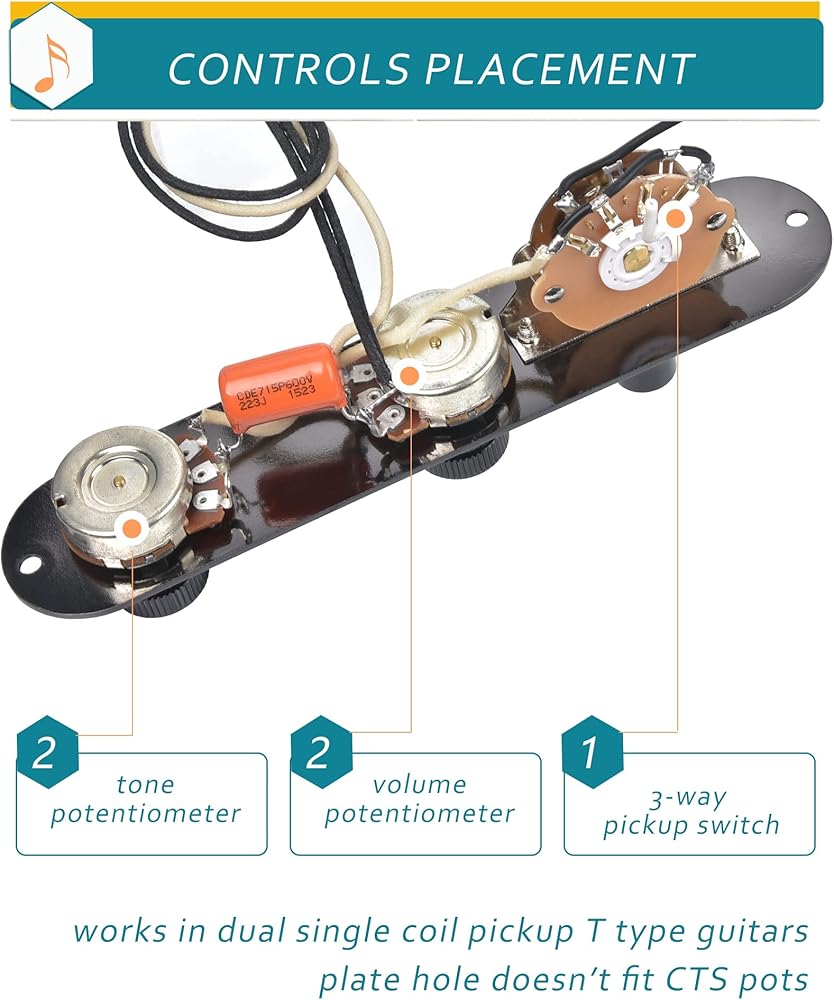 𝙒𝙃𝘼𝙏 𝙒𝙄𝙇𝙇 𝙔𝙊𝙐 𝙂𝙀𝙏 - 1 x 32mm wide fully loaded control panel, fit for Tele Style Guitar; 2 x mounting screws; 1 x wiring diagram
