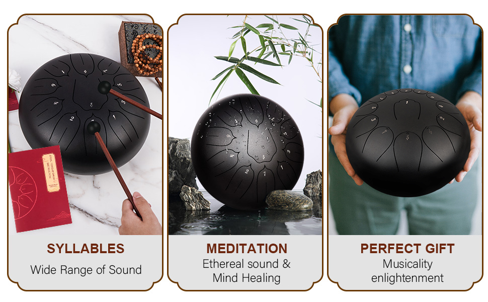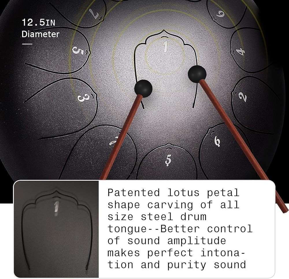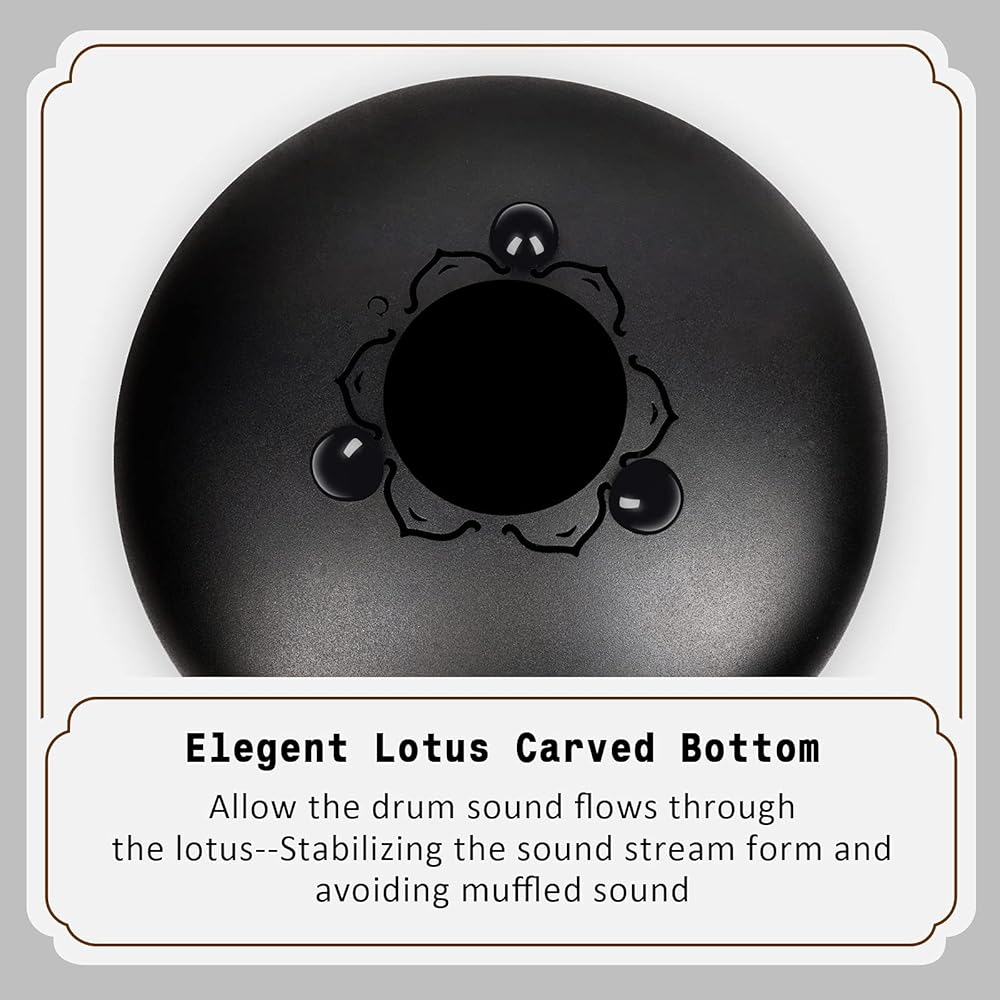 Unique Peaceful Healing Sound from INMAKER Steel Drum. Restful sound ease your stress,free your mind--A real footloose clear soul;Special designed Lotus shape of steel drum tongue ensure your perfect drum playing experience.