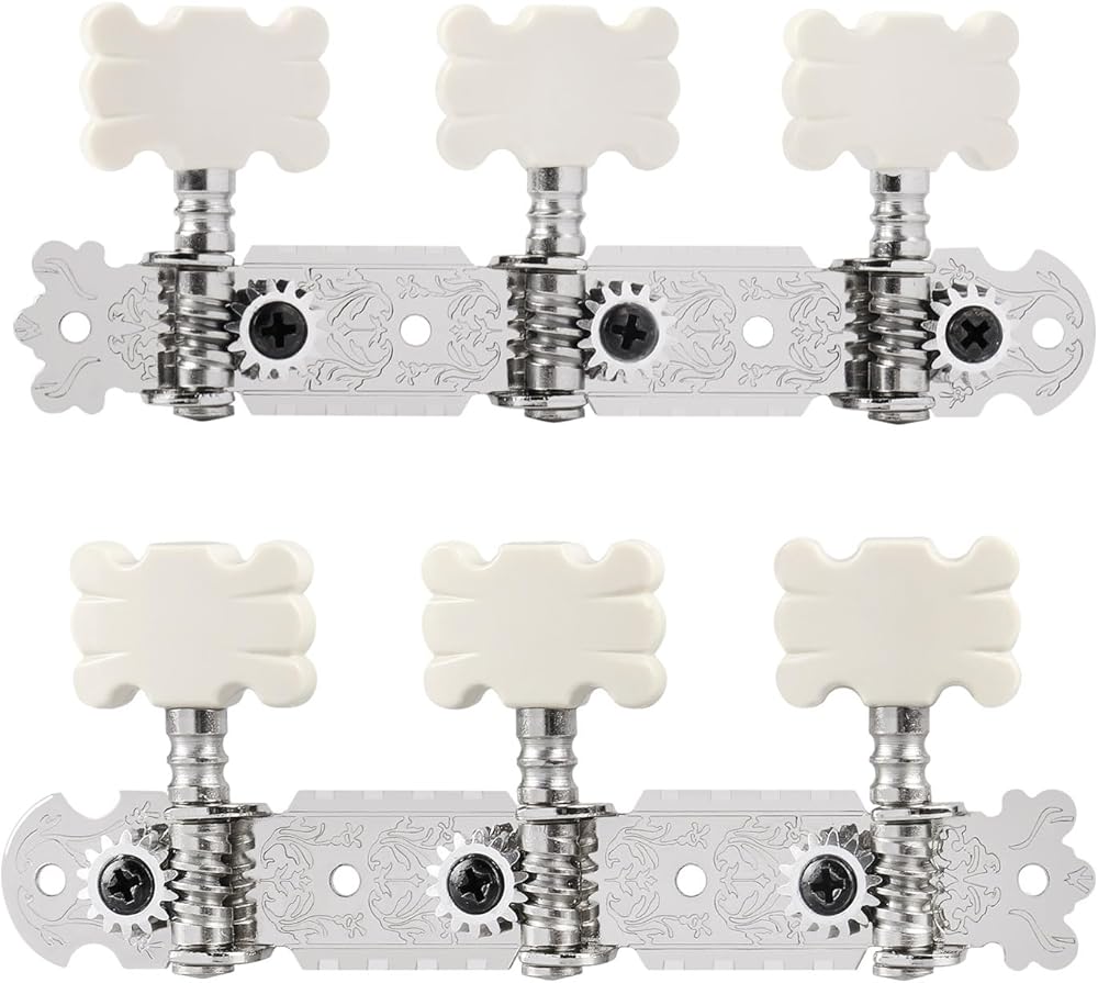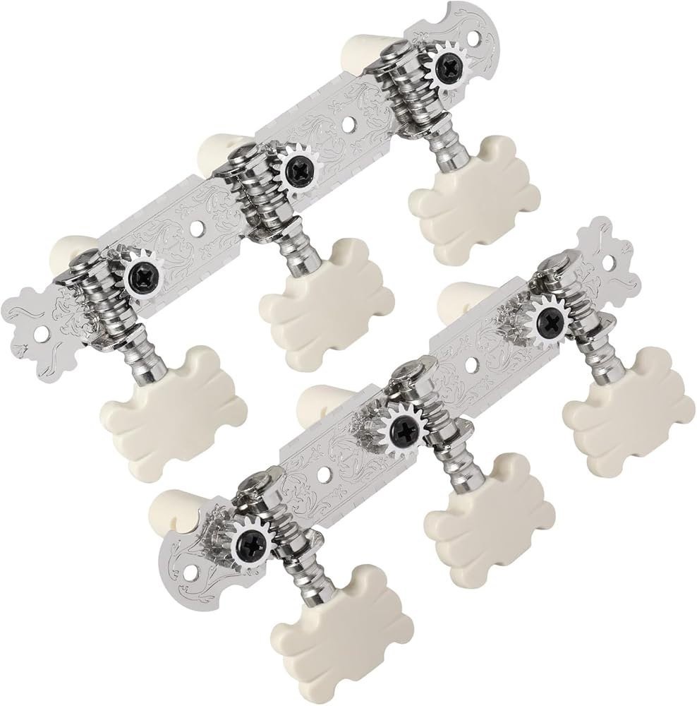 Mr.Power Classical Guitar Tuning Keys 1:14 String Machine Heads 3+3 Guitar Tuners Pegs Replacemen White Buttons Set with Tools Screwdriver (Flower Button)
