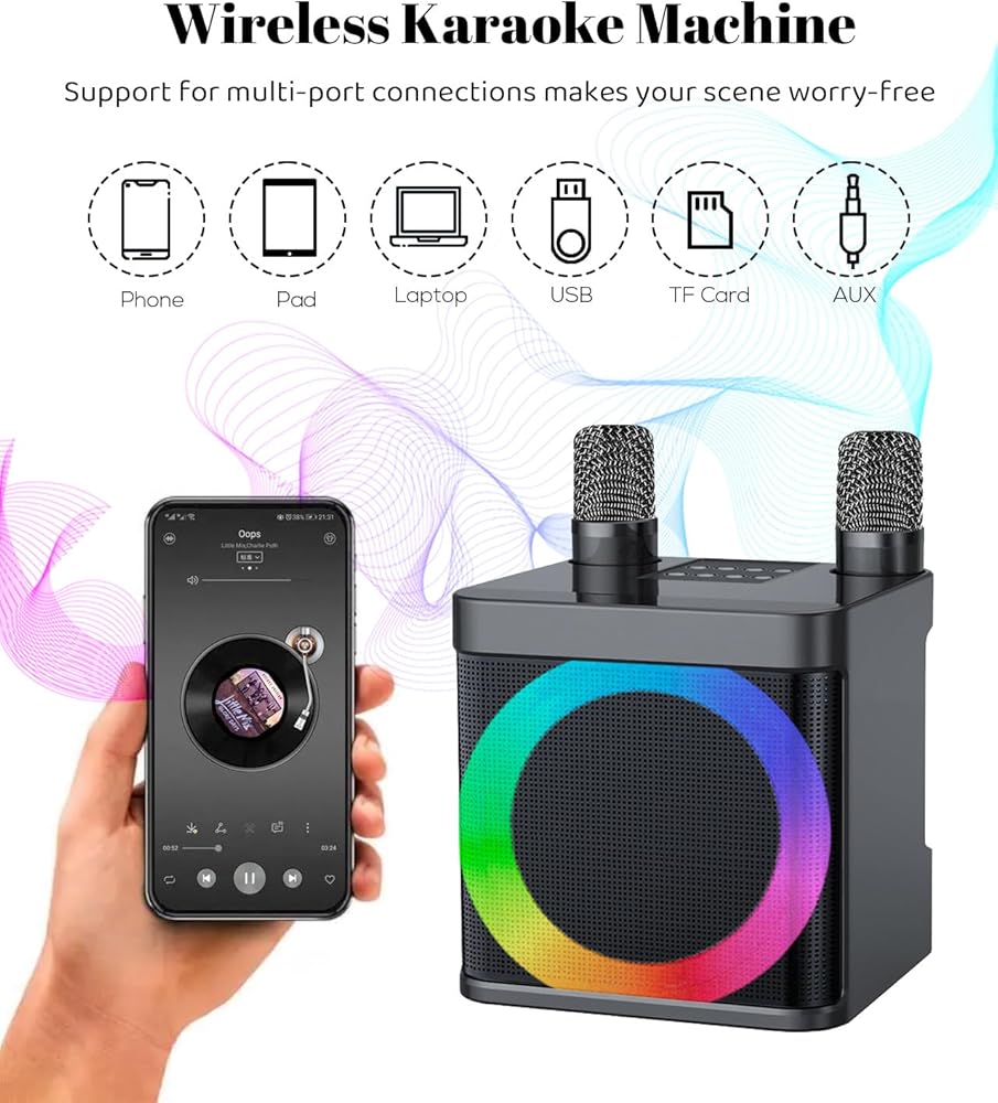 Karaoke Machine for Adults and Kids with 2 Wireless Microphones,Portable Bluetooth Speaker PA Speaker System with LED Party Lights for Home Party, Picnic,Car,Outdoor/Indoor/Birthday Gifts