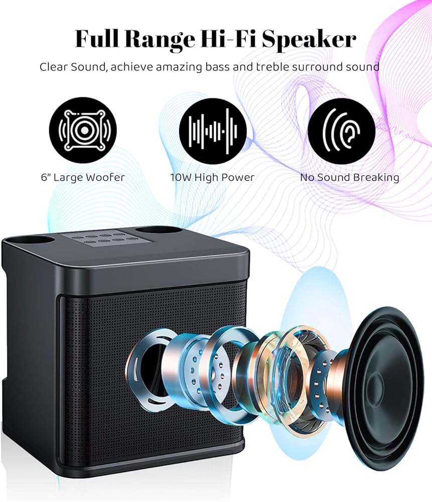 Easy & Play to Go Mini karaoke machine:Portable karaoke machines built-in powerful battery could give you up to 4-6 hours of playtime, Besides, the speaker works as a charging station, It weighs 1.3 kg and is Light, portable, and compact.You can easy to carry it to wherever the fun is which is the perfect choice for parties, beaches, weddings, gathering outdoor&indoor activities.