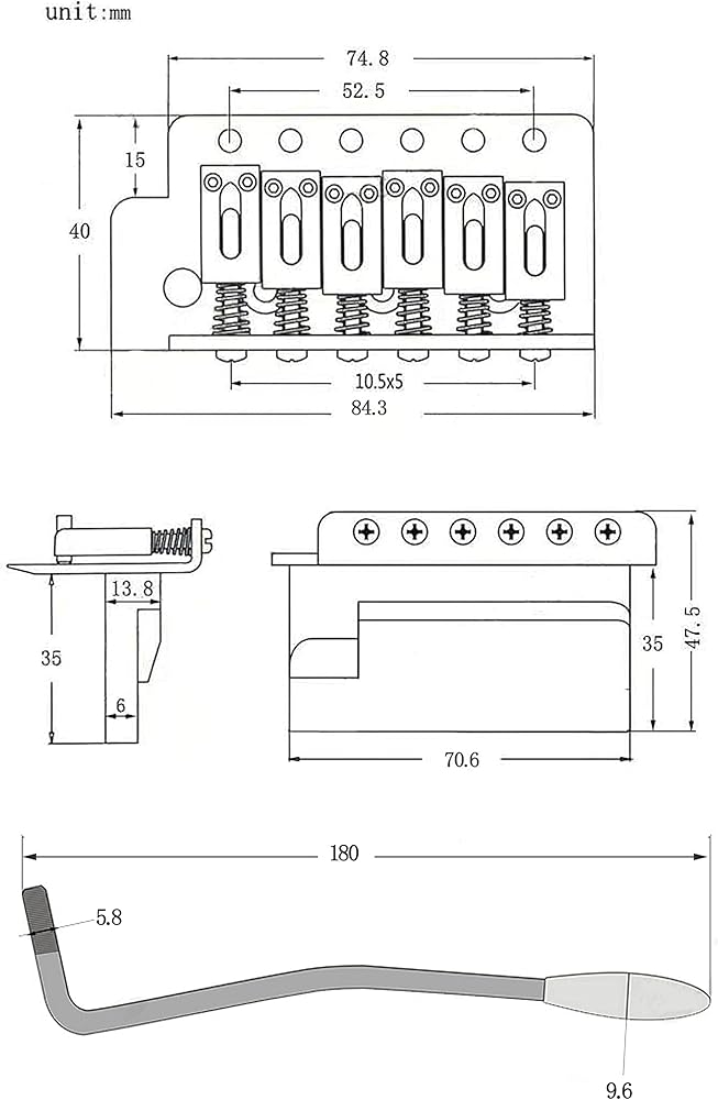 The Standard Single Tremolo Bridge System comes with screw, springs and other mounting accessories, no extra tools needed, very easy to install and operate, suitable for SQ ST 6 string electric guitar, Stratocaster Squire type guitar and les-paul guitar.