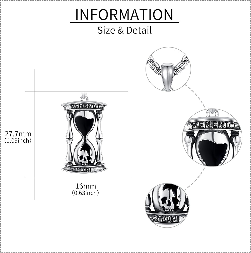 【MATERIAL】 925 sterling silver memento mori pendant, hypoallergenic,tarnish resistant,nickel-free,lead-free,cadmium-free,And stainless steel chain is sturdy and durable.