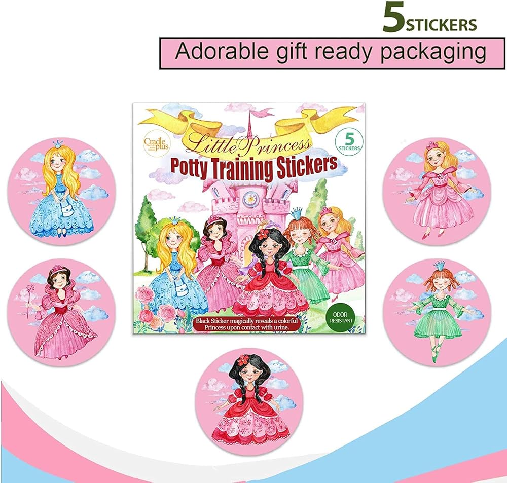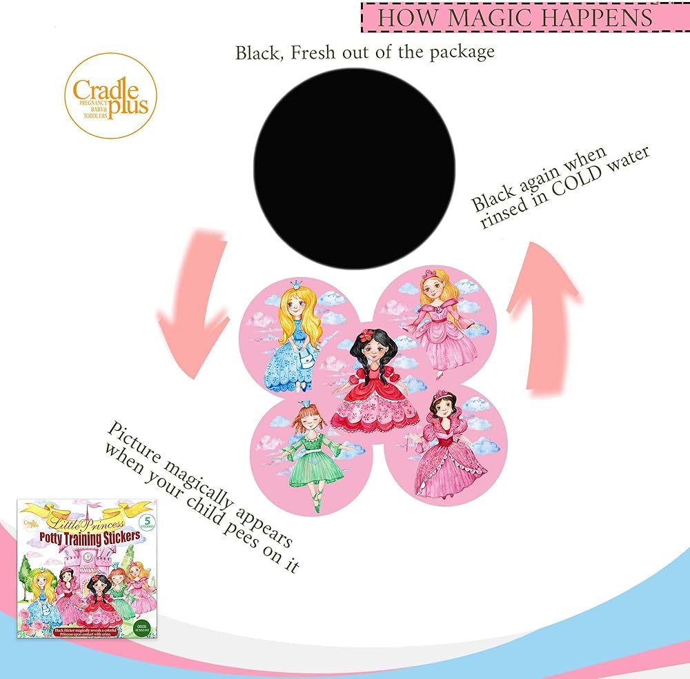 Potty Training Seat Magic Sticker Princess Toddler Potty Training Toilet Color Changing Sticker | 5 Pack Toilet Targets with Free Potty e Book | Use with/Without Potty Chart or Potty Training Watches