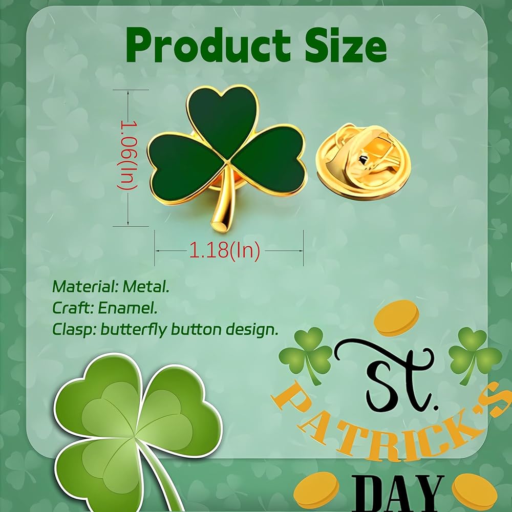 Clover design: Our clover pins is designed by the classic traditional elements of St. Parik's Day, which caters to the theme of Irish festivals and is very suitable for decorating your clothes in Irish festivals.