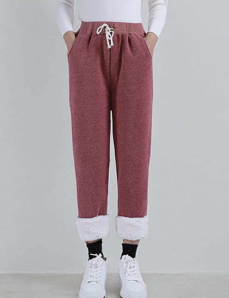 Yeokou Womens Sherpa Lined Sweatpants Winter Warm Fleece Joggers Casual Lounge Pants