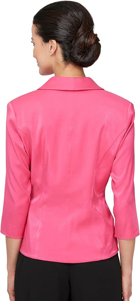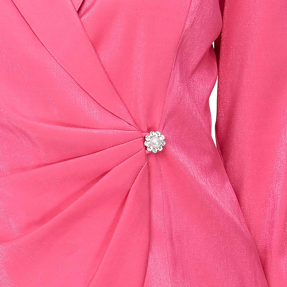 Elevate your wardrobe with the Alex Evenings Women's 3/4 Sleeve Side Close Blouse, a stunning piece designed for classic elegance and all-night comfort. Crafted from soft and lightweight stretch shimmer fabric, this blouse offers an alluring sheen that adds a touch of glamour to any outfit, ensuring you look and feel fabulous. With 3/4 sleeves, a decorative side closure, this blouse exudes timeless sophistication and minimal yet elegant style. You can dance with ease at weddings or special occasions, thanks to the surplice neckline and decorative closure, ensuring a comfortable fit that lasts all night long. Whether you're looking for a statement piece or simply want to add a touch of class to your ensemble, this blouse is the perfect choice for creating a standout look while enjoying every special moment.