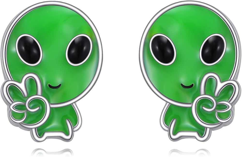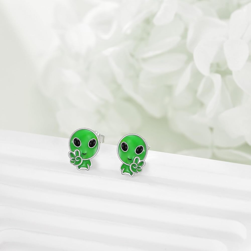 URONE Alien Earrings 925 Sterling Silver UFO Earrings Space Earrings Alien Jewelry Gifts for Women Men